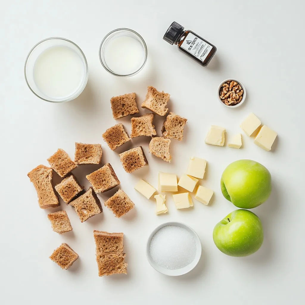 Die Hauptzutaten sorgen für den Grundgeschmack. Der alte Brotlaib gibt dem Auflauf seine Struktur. Die Eier und Milch machen ihn schön cremig. Brauner Zucker bringt eine süße Note. Äpfel fügen Frische und einen tollen Geschmack hinzu.
