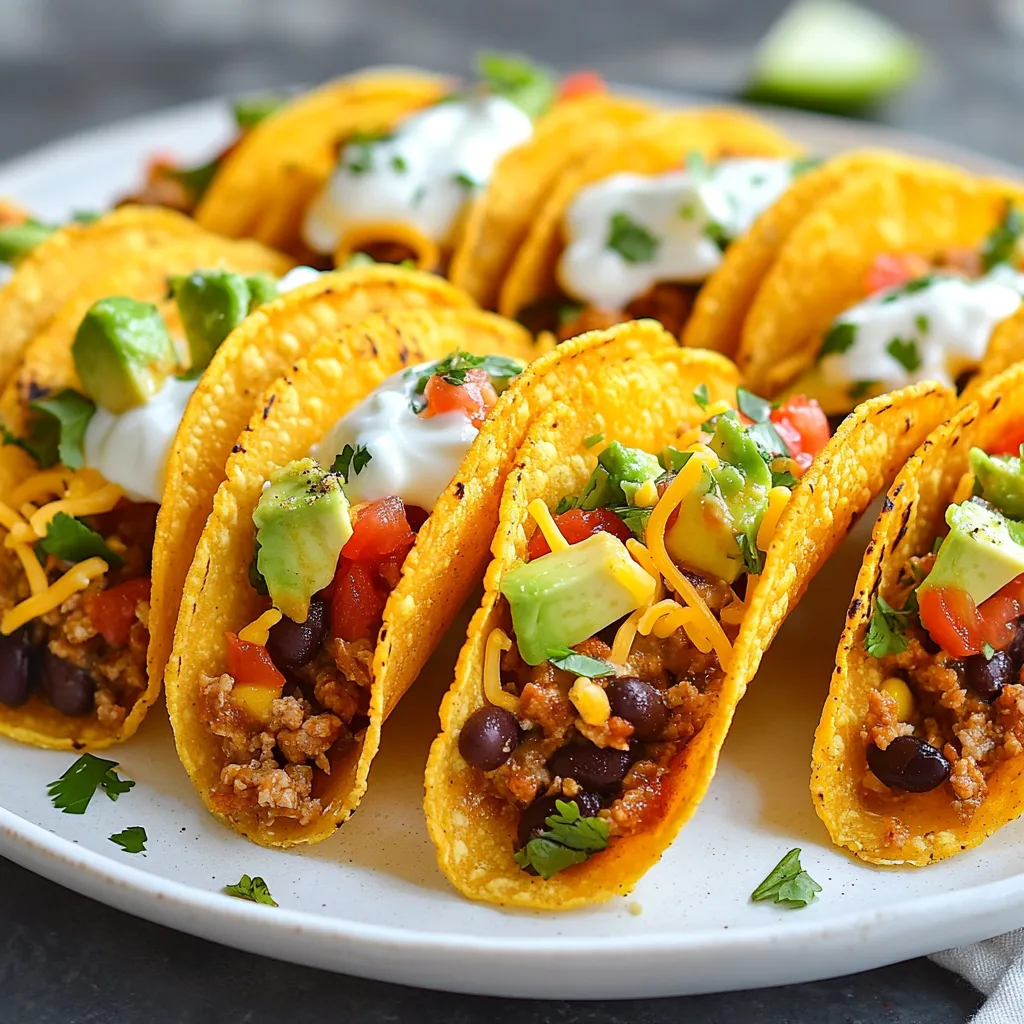 - Mageres Fleisch oder pflanzliche Alternativen: Verwenden Sie mageres Truthahnfleisch oder pflanzliche Optionen wie Linsen. Das macht die Tacos leichter und gesünder.