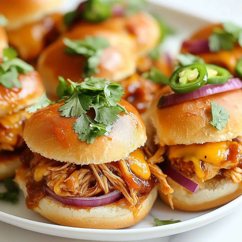 Leckere Mini-Slider mit BBQ-Hühnchen, die perfekt für jedes Treffen sind.