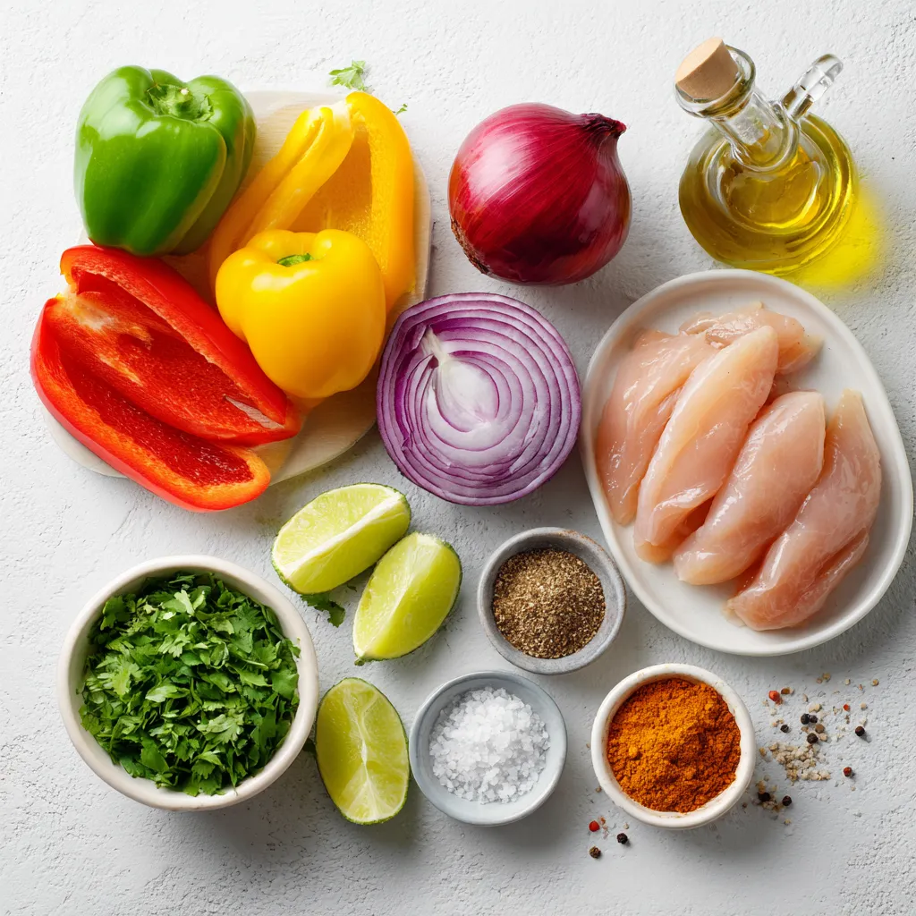 Hauptzutaten für Blattpfanne Fajitas