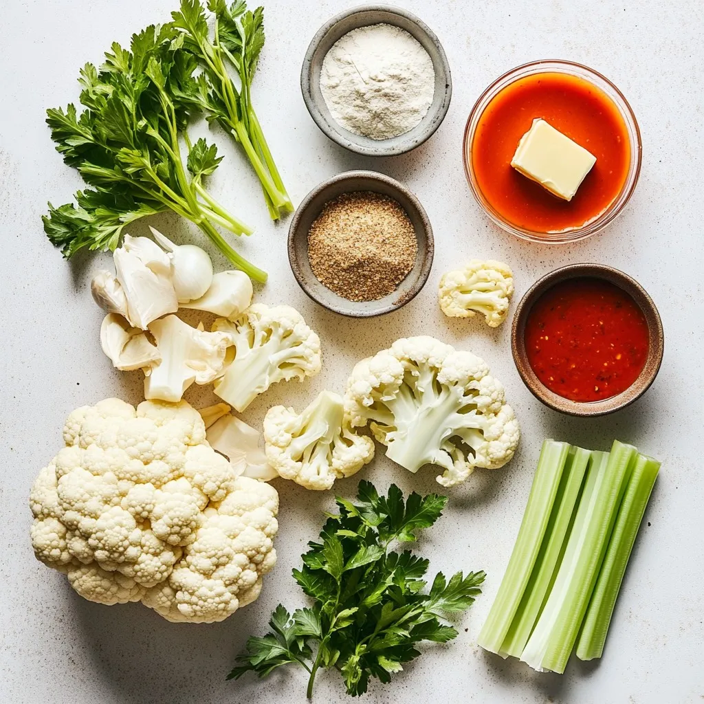 Für die Buffalo Blumenkohl Bissen brauchst du einige einfache Zutaten. Hier sind die Hauptzutaten: