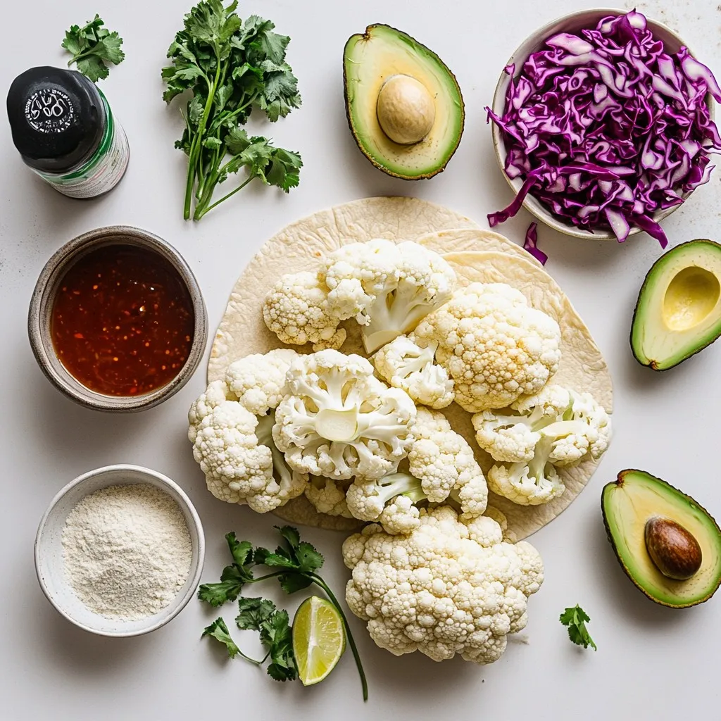 Hauptzutaten für Buffalo Blumenkohl-Tacos