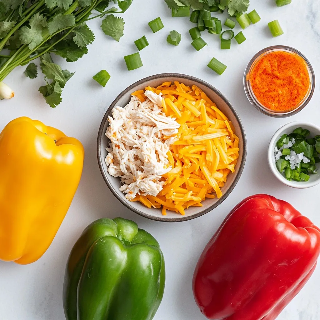 Die Hauptzutaten für Buffalo Chicken Stuffed Peppers sind einfach und lecker. Du benötigst: