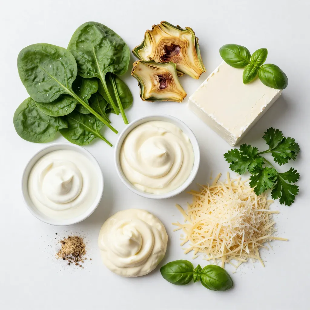 Die Hauptzutaten für unseren Dip sind einfach zu finden. Frischer Spinat bringt eine tolle Farbe und einen milden Geschmack. Artischockenherzen fügen eine zarte Textur hinzu. Frischkäse sorgt für die cremige Basis. Sauerrahm und Mayonnaise bringen zusätzlichen Geschmack und machen den Dip noch reicher.