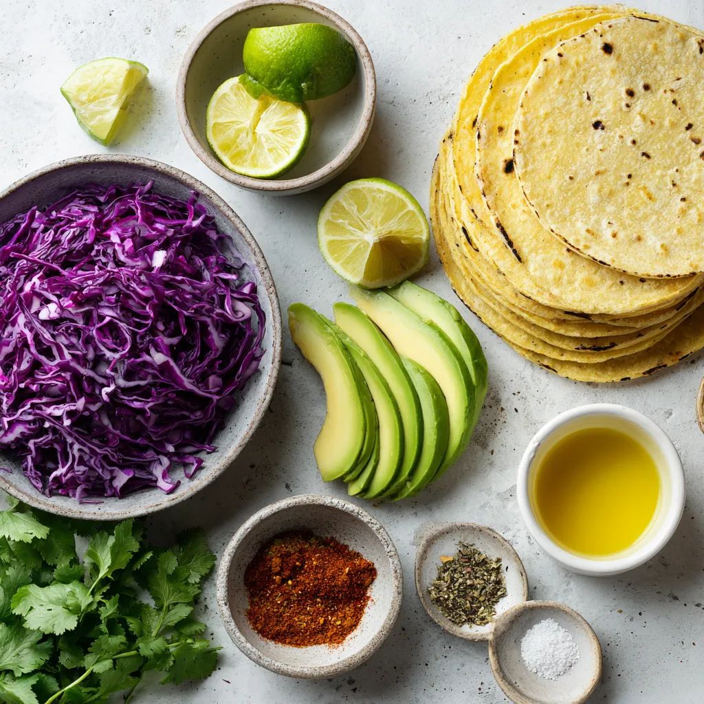Die Beläge machen die Tacos lebendig. Die Avocado sorgt für einen cremigen Biss. Roter Kohl gibt Farbe und Textur. Der Koriander bringt frische Noten. Du kannst auch Limettenspalten bereitstellen, damit jeder nach Belieben drücken kann.