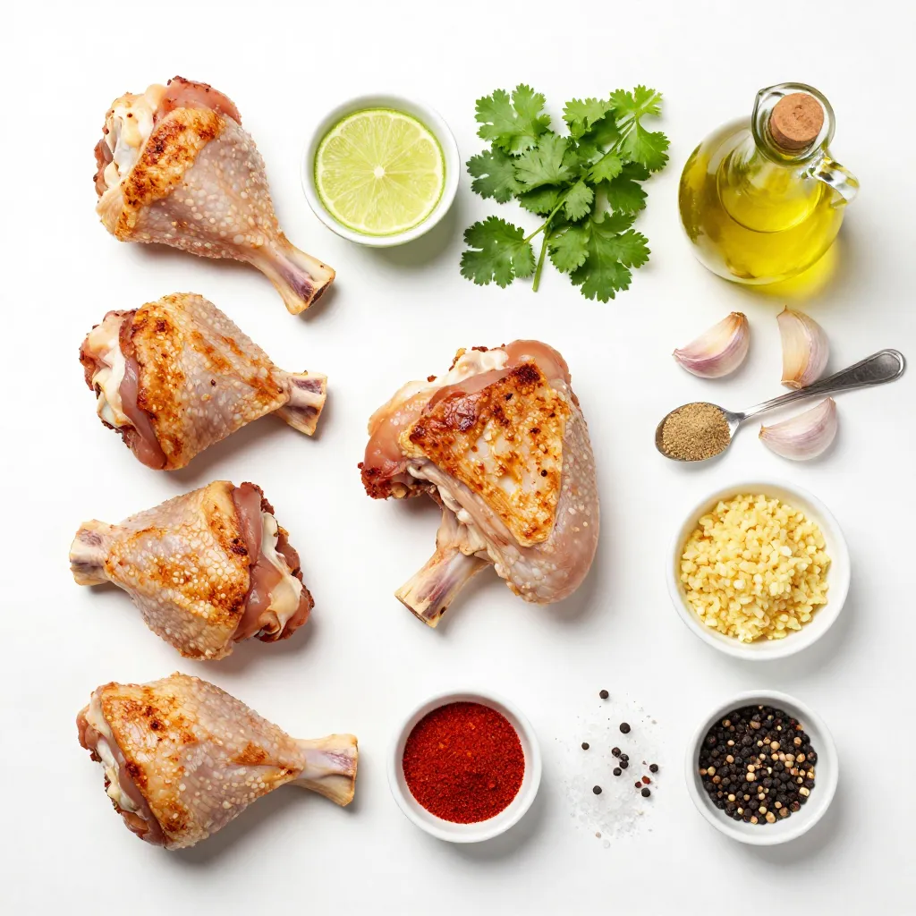 Die Hauptzutaten sind einfach zu finden. Die Hähnchenkeulen geben viel Geschmack. Die Limetten bringen Frische. Der Koriander fügt ein tolles Aroma hinzu. Diese Zutaten schaffen die Basis für ein leckeres Gericht.