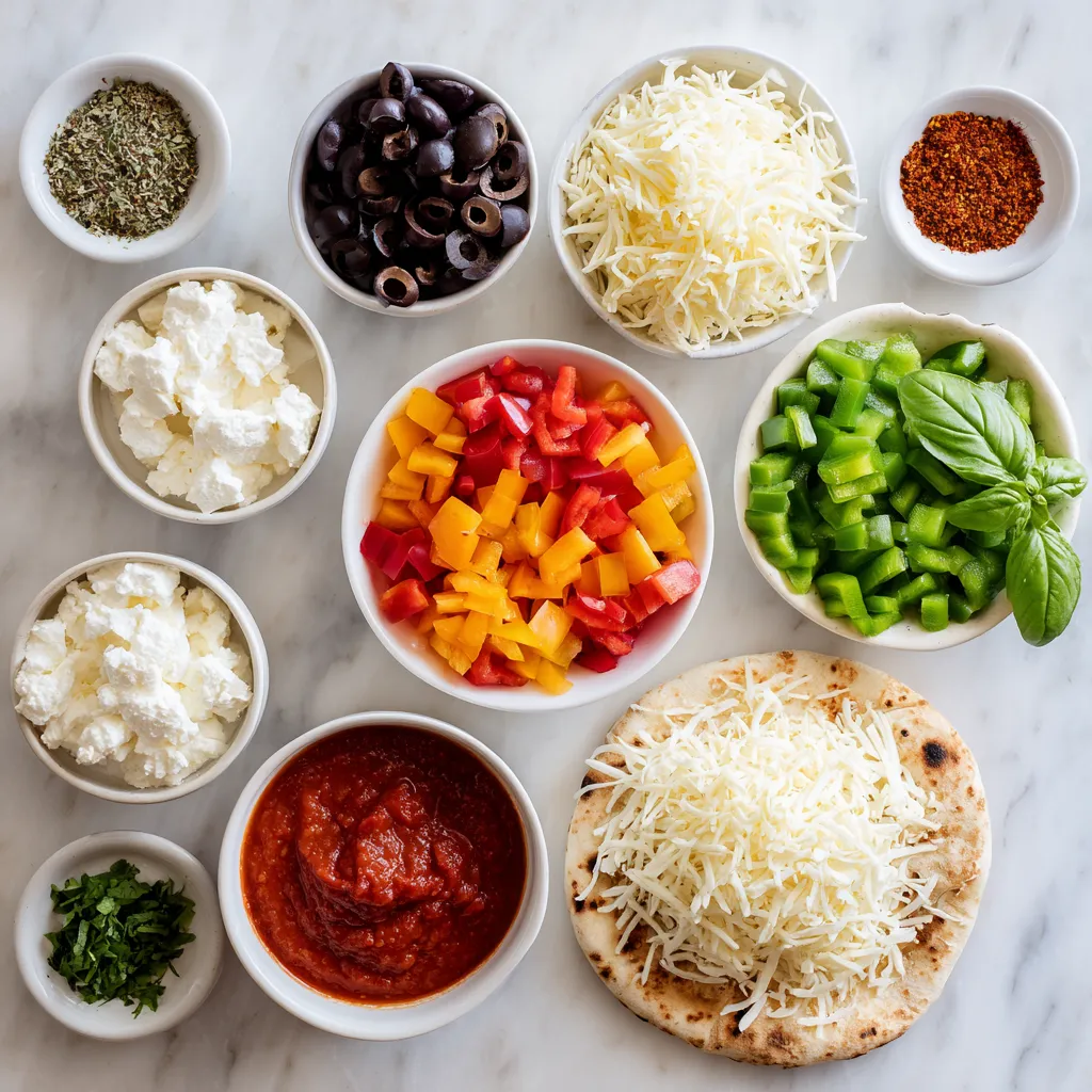 - 1 Packung (8 Unzen) Vollkorn-Pizzateig oder Fladenbrot