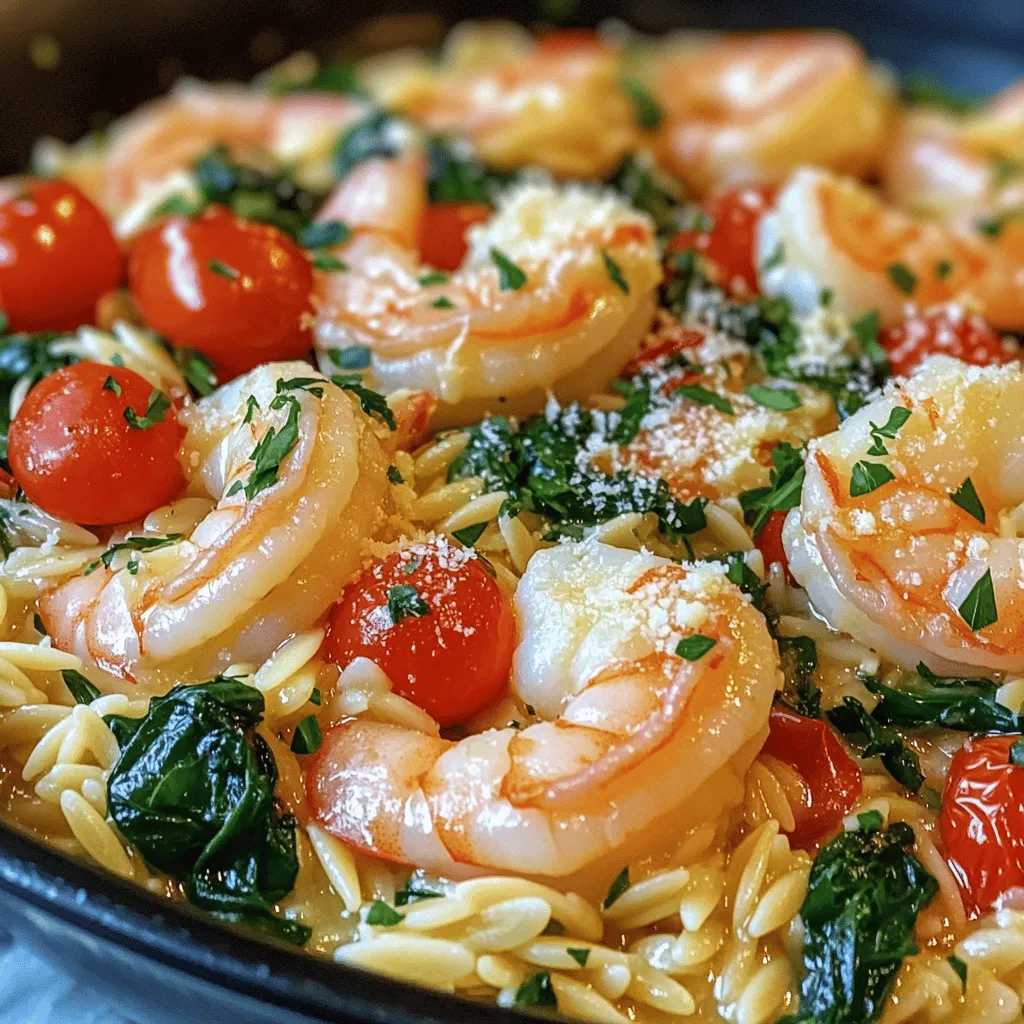 Diese Zutaten sind wichtig für den vollen Geschmack. Die Garnelen geben dir eine tolle Textur. Die Orzo-Nudeln machen das Gericht sättigend und cremig.