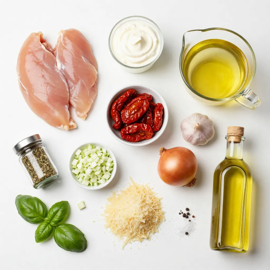 Hähnchenbrustfilets sind die Basis dieses Gerichts. Sie sind zart und saftig, wenn sie richtig gekocht werden. Schlagsahne bringt eine wunderbare Cremigkeit. Die getrockneten Tomaten fügen viel Geschmack hinzu. Sie sind süß und herzhaft zugleich.