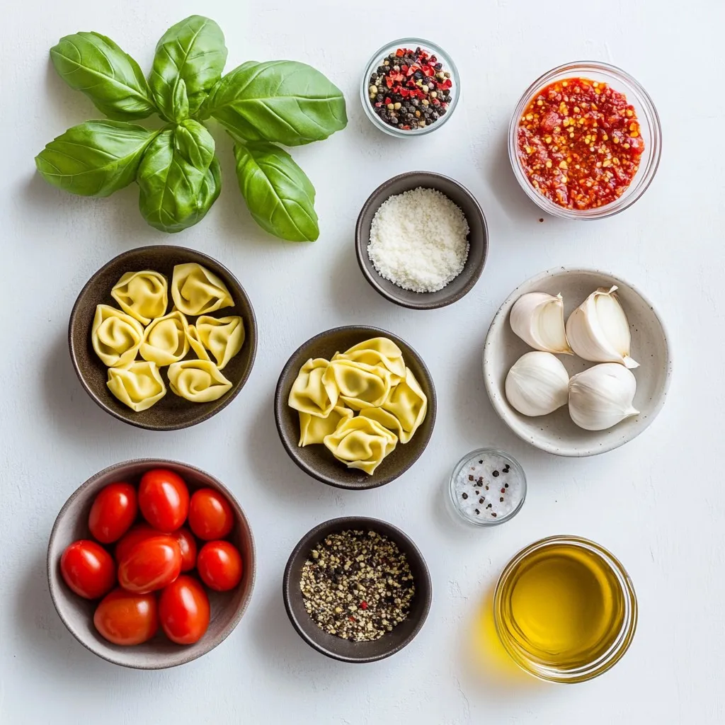 Für die cremige Tomate Basilikum Tortellini Suppe brauchst du: