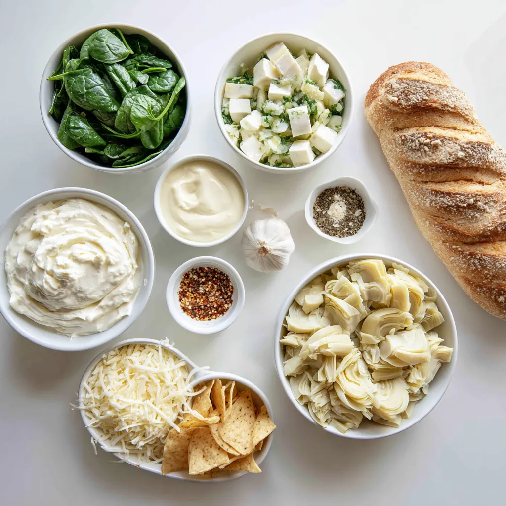 Heizen Sie Ihren Ofen auf 190°C vor. Dies sorgt dafür, dass der Dip gleichmäßig gart. Nehmen Sie alle Zutaten aus der Liste bereit. Das macht das Mischen einfacher und schneller. Sie benötigen frischen Spinat und Artischockenherzen aus der Dose. Diese geben dem Dip einen tollen Geschmack und Textur.