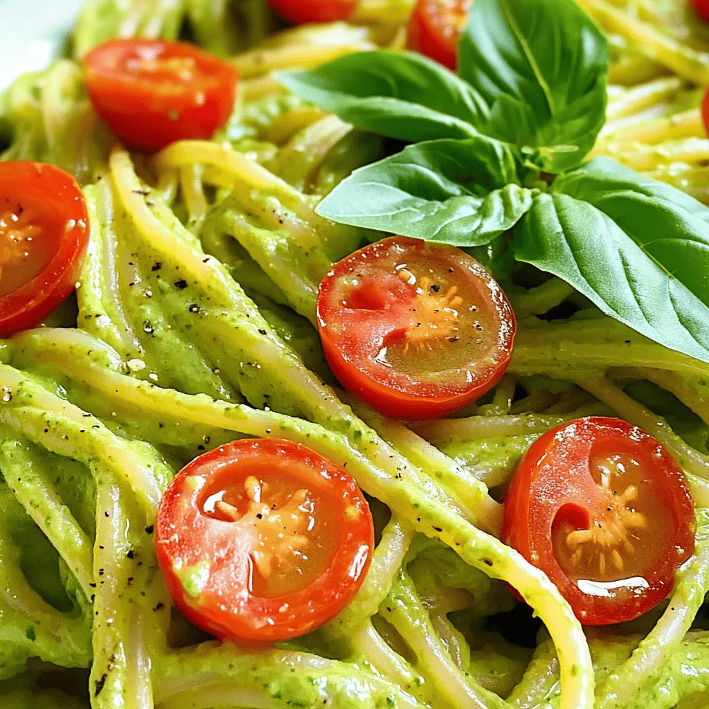 Serviere die cremige Avocado-Pasta warm. Garnierungen machen dein Gericht noch leckerer. Verwende halbierte Cherrytomaten für einen frischen Geschmack. Füge weitere Basilikumblätter hinzu, um Farbe und Aroma zu ergänzen. Du kannst auch geröstete Pinienkerne oder Mandeln darüber streuen. Diese bringen etwas Crunch und machen das Gericht noch spannender.