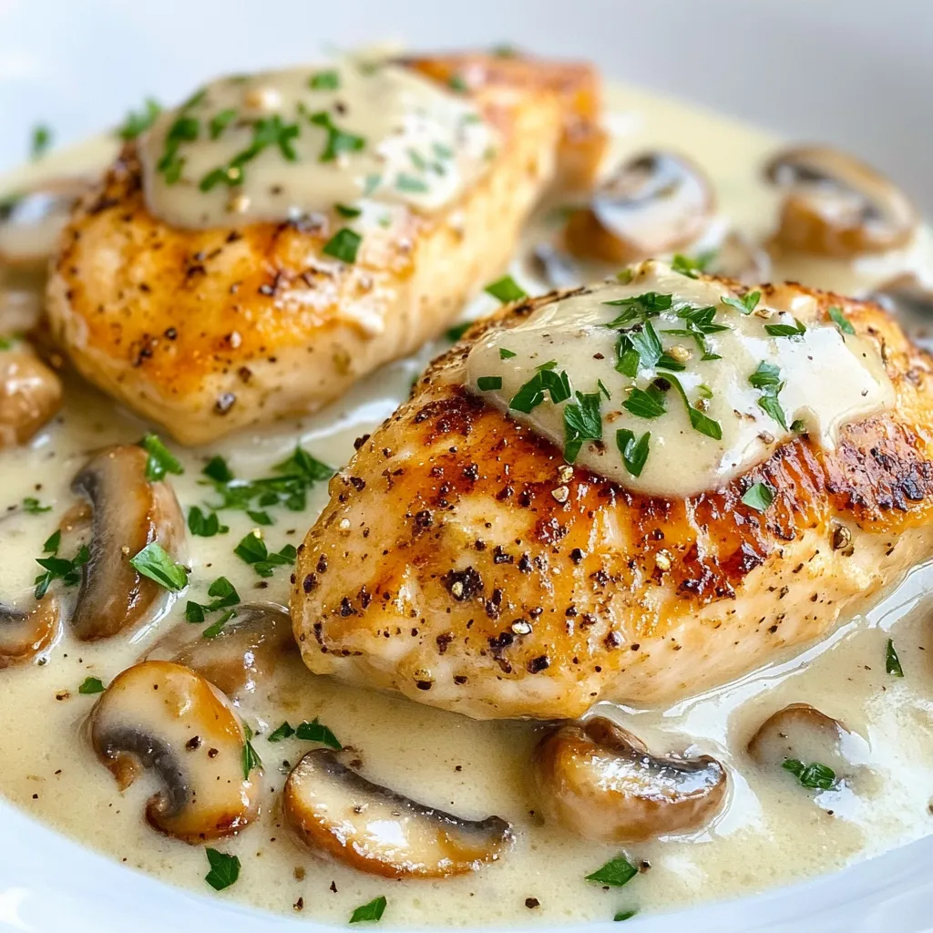 - Kombinieren: Legen Sie die gekochten Hähnchenbrüste zurück in die Pfanne und löffeln Sie die cremige Pilzsoße darüber. Lassen Sie das Gericht für weitere 2-3 Minuten erhitzen, und passen Sie die Würze mit Salz und Pfeffer nach Geschmack an.