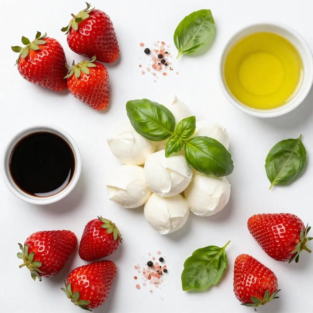 Diese Zutaten bilden die Grundlage für jeden Biss. Die süßen Erdbeeren, der zarte Mozzarella und das frische Basilikum passen perfekt zusammen.
