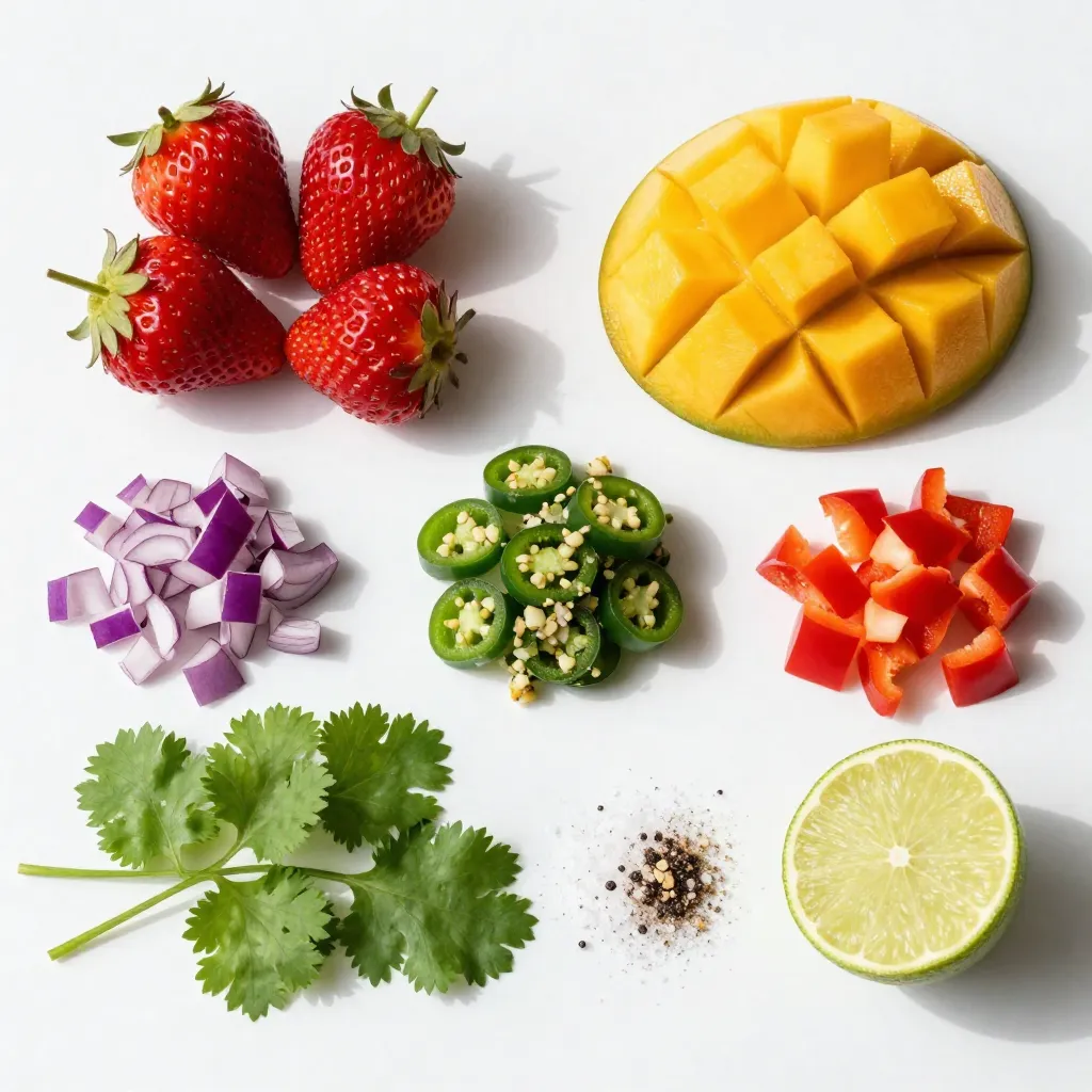 Für die perfekte Erdbeer-Mango-Salsa benötigen Sie einige frische Zutaten. Hier sind die Hauptbestandteile: