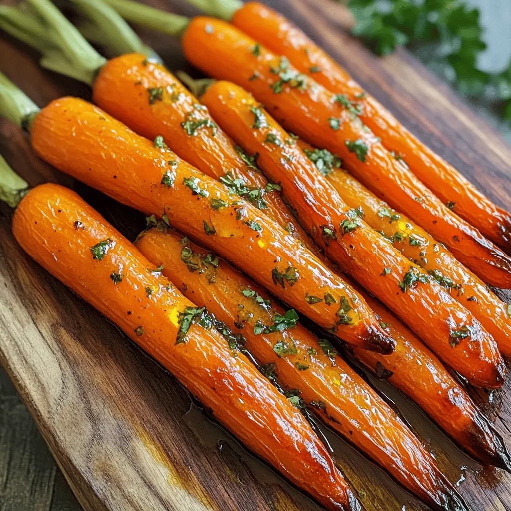 ![- 450 g Babykarotten oder normale Karotten - 3 Esslöffel Olivenöl - 4 Knoblauchzehen, fein gehackt - 1 Teelöffel getrockneter Thymian - 1 Teelöffel getrockneter Rosmarin - Salz und Pfeffer nach Geschmack - 1 Teelöffel Honig - Frische Petersilie zum Garnieren Ich verwende oft Babykarotten, weil sie zart und süß sind. Normale Karotten in Sticks sind auch gut. Olivenöl gibt den Karotten einen tollen Geschmack. Der gehackte Knoblauch bringt viel Aroma. Die Kräuter machen das Gericht frisch und lebendig. Thymian und Rosmarin passen gut zu Karotten. Manchmal füge ich Honig hinzu. Das macht die Karotten noch süßer. Frische Petersilie ist perfekt, um das Gericht zu dekorieren. Sie gibt einen schönen Farbkontrast. Perfekt für den letzten Schliff. Wenn du mehr über die Zubereitung erfahren möchtest, schau dir das [Full Recipe] an. Heizen Sie Ihren Ofen auf 200°C (400°F) vor. Dies sorgt für die perfekte Temperatur zum Rösten. In einer großen Schüssel mischen Sie 3 Esslöffel Olivenöl, 4 fein gehackte Knoblauchzehen, 1 Teelöffel getrockneten Thymian, 1 Teelöffel getrockneten Rosmarin, Salz und Pfeffer. Rühren Sie alles gut um. So entsteht ein aromatisches Kräuteröl. Nehmen Sie 450 g Babykarotten oder geschnittene normale Karotten. Geben Sie diese in die Schüssel mit der Ölmischung. Wenden Sie die Karotten gut, bis sie gleichmäßig überzogen sind. Verteilen Sie die Karotten dann gleichmäßig auf einem mit Backpapier ausgelegten Backblech. Achten Sie darauf, dass die Karotten nicht überladen sind. Schieben Sie das Backblech in den vorgeheizten Ofen. Rösten Sie die Karotten für 20-25 Minuten. Nach der Hälfte der Garzeit drehen Sie die Karotten um. So werden sie schön goldbraun und zart. Genießen Sie den köstlichen Duft, während sie im Ofen rösten. Wenn sie fertig sind, nehmen Sie das Blech heraus und lassen Sie die Karotten kurz abkühlen. Verwenden Sie das Full Recipe für alle Details. Um die besten Ergebnisse zu erzielen, laden Sie das Backblech nicht zu voll. Wenn die Karotten zu eng liegen, werden sie nicht gleichmäßig gar. Eine gute Rösttechnik sorgt für zarte und leckere Karotten. Verwenden Sie ein Backpapier, um die Reinigung einfach zu halten. Das Backpapier hilft, die Karotten perfekt zu rösten und verhindert das Ankleben. Präsentieren Sie die Karotten auf einem rustikalen Holzbrett. Das gibt dem Gericht ein schönes, einladendes Aussehen. Beträufeln Sie die Karotten mit dem restlichen Öl vom Backblech. So fügen Sie zusätzlichen Geschmack und Glanz hinzu. Karotten sind reich an Vitaminen und Mineralien. Sie sind eine großartige Quelle für Beta-Carotin, das gut für die Augen ist. Knoblauch hat viele Vorteile für die Gesundheit. Es kann das Immunsystem stärken und hat entzündungshemmende Eigenschaften. Die Kräuter bringen nicht nur Geschmack, sondern auch gesunde Antioxidantien in Ihr Essen. {{image_4}} Sie können andere Gemüsesorten zu den Karotten hinzufügen, um mehr Vielfalt zu schaffen. Zucchini, Paprika oder sogar Rote Bete passen gut. Diese Gemüsesorten bringen verschiedene Farben und Texturen auf den Teller. Sie geben auch mehr Nährstoffe und Geschmack. Mixen Sie die Karotten mit einem oder zwei dieser Gemüsesorten. Achten Sie darauf, die Garzeit anzupassen, falls nötig. Um den Geschmack zu verändern, fügen Sie Cayennepfeffer oder Paprika hinzu. Ein kleiner Schuss Cayennepfeffer bringt eine angenehme Schärfe. Paprika sorgt für einen rauchigen Geschmack. Experimentieren Sie mit der Menge, um den perfekten Geschmack zu finden. Diese Gewürze machen das Gericht aufregender und bringen Abwechslung in Ihre Küche. Wenn Sie eine süßere Note mögen, verwenden Sie Honig oder Ahornsirup. Diese Zutaten passen gut zu den Karotten und dem Knoblauch. Honig gibt einen milden, süßen Geschmack. Ahornsirup bringt eine tiefe, karamellige Note. Träufeln Sie diese Süßstoffe über die Karotten, bevor Sie sie rösten. So wird das Gericht noch köstlicher und ansprechender. Um die gerösteten Karotten frisch zu halten, lege sie in den Kühlschrank. Verwende dafür einen luftdichten Behälter. Das schützt die Karotten vor dem Austrocknen und bewahrt ihren Geschmack. Du kannst auch eine Frischhaltefolie nutzen. Achte darauf, die Karotten gut zu bedecken, um die Frische zu erhalten. Geröstete Karotten bleiben im Kühlschrank etwa 3 bis 5 Tage frisch. Achte darauf, sie innerhalb dieser Zeit zu essen. Wenn du sie länger aufbewahren möchtest, friere sie ein. So bleiben sie bis zu 3 Monate haltbar. Das Einfrieren bewahrt den Geschmack und die Nährstoffe. Die besten Methoden zum Aufwärmen sind einfach. Du kannst die Karotten in der Mikrowelle erhitzen. Stelle sicher, dass du sie in einer mikrowellengeeigneten Schüssel hast. Erhitze sie in kurzen Intervallen, um sie nicht auszutrocknen. Eine andere Möglichkeit ist, sie im Ofen bei 180°C für etwa 10 Minuten zu erwärmen. So bleiben sie knusprig. Du kannst auch eine Pfanne verwenden, um sie kurz anzubraten. Das gibt ihnen neuen Schwung. Die ideale Garzeit für Karotten beträgt 20-25 Minuten. In dieser Zeit werden die Karotten zart und bekommen eine goldene Farbe. Sie können sie in der Mitte der Garzeit umdrehen, damit sie gleichmäßig rösten. So werden sie von allen Seiten perfekt. Ja, frische Kräuter sind eine tolle Option. Sie geben den Karotten einen frischen Geschmack. Sie können frischen Thymian oder Rosmarin verwenden. Einfach die Menge entsprechend anpassen, da frische Kräuter kräftiger sind als getrocknete. Ja, das ist möglich! Sie können die Karotten ganz einfach im Voraus vorbereiten. Schneiden Sie sie und mischen Sie sie mit dem Öl und den Kräutern. Lassen Sie sie dann im Kühlschrank stehen, bis Sie bereit sind, sie zu rösten. So sparen Sie Zeit beim Kochen! Schauen Sie sich das vollständige Rezept an, um alles richtig zu machen. Karotten rösten ist einfach und lecker. Wir haben die wichtigsten Zutaten besprochen. Die Zubereitung ist schnell, und die Tipps 