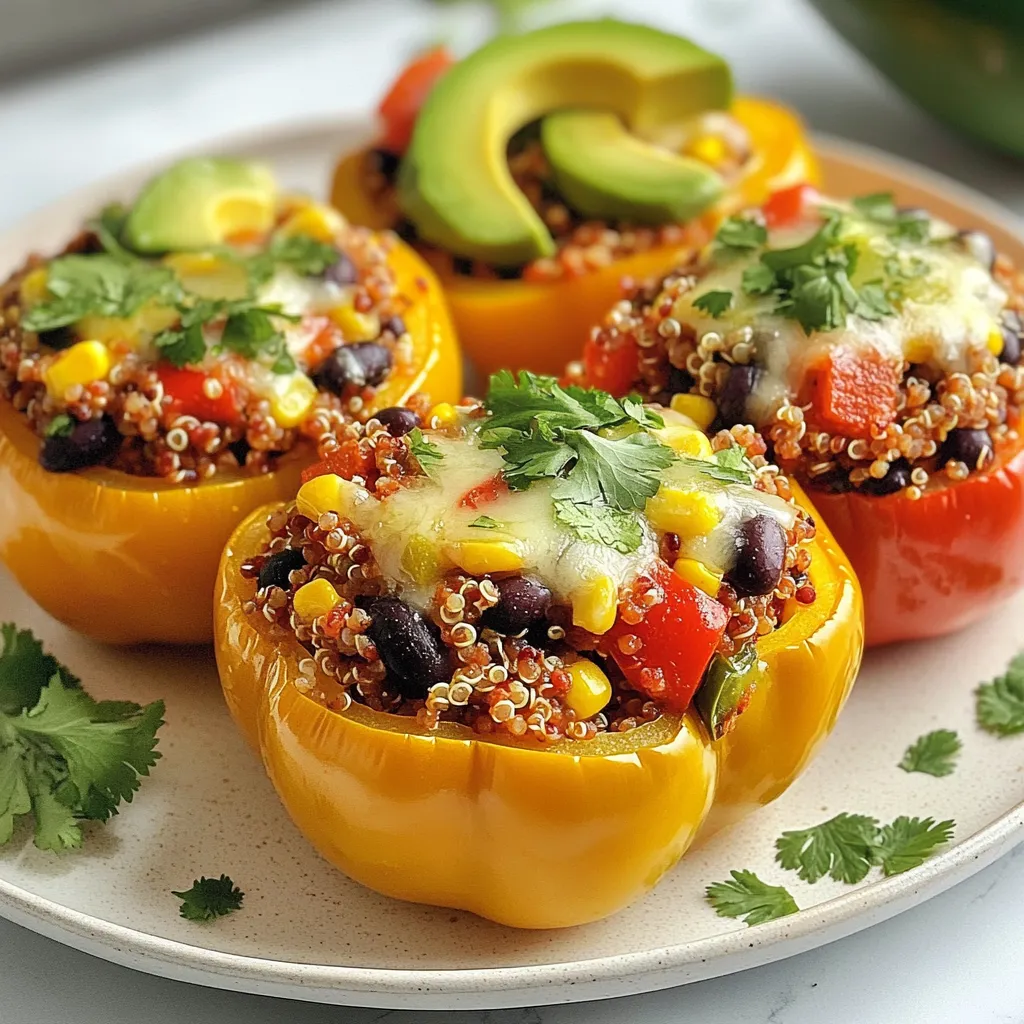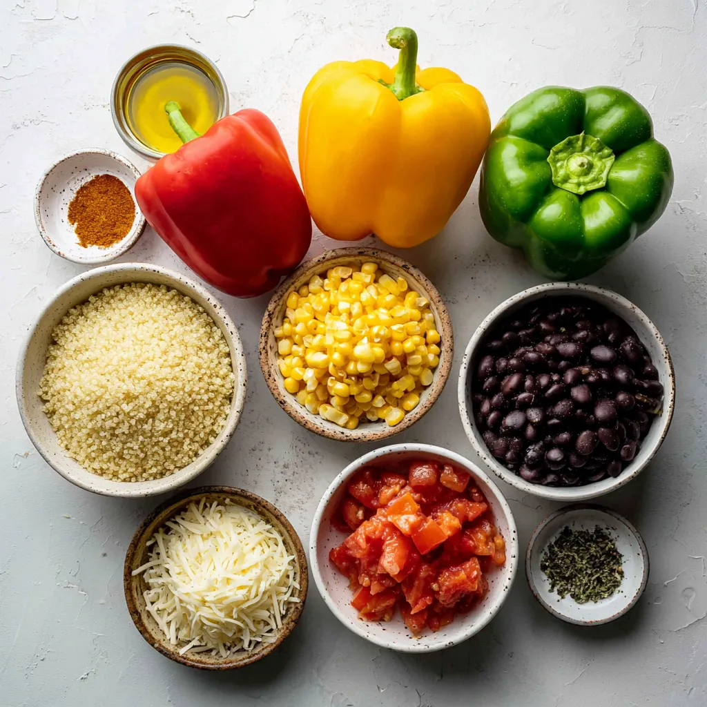 Ich liebe es, gefüllte Paprika vegetarisch zuzubereiten. Die Füllung besteht aus Quinoa, schwarzen Bohnen und Mais. Diese Zutaten sind nahrhaft und lecker. Quinoa ist eine tolle Proteinquelle. Die Bohnen geben der Mischung eine cremige Textur. Ich verwende frische oder aus der Dose gewürfelte Tomaten. Sie fügen Geschmack und Farbe hinzu. Zum Würzen nehme ich Kreuzkümmel und Paprika. Diese Gewürze bringen die Aromen zum Leben. Den Käse füge ich am Ende hinzu. So wird die Füllung schön cremig.