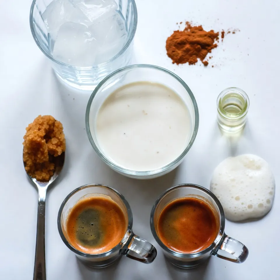 Die Hauptbestandteile sind einfach und leicht zu finden. Der Espresso gibt den starken Geschmack. Der braune Zucker sorgt für eine süße Note. Hafermilch macht das Getränk cremig und ist eine gute Wahl für Veganer.