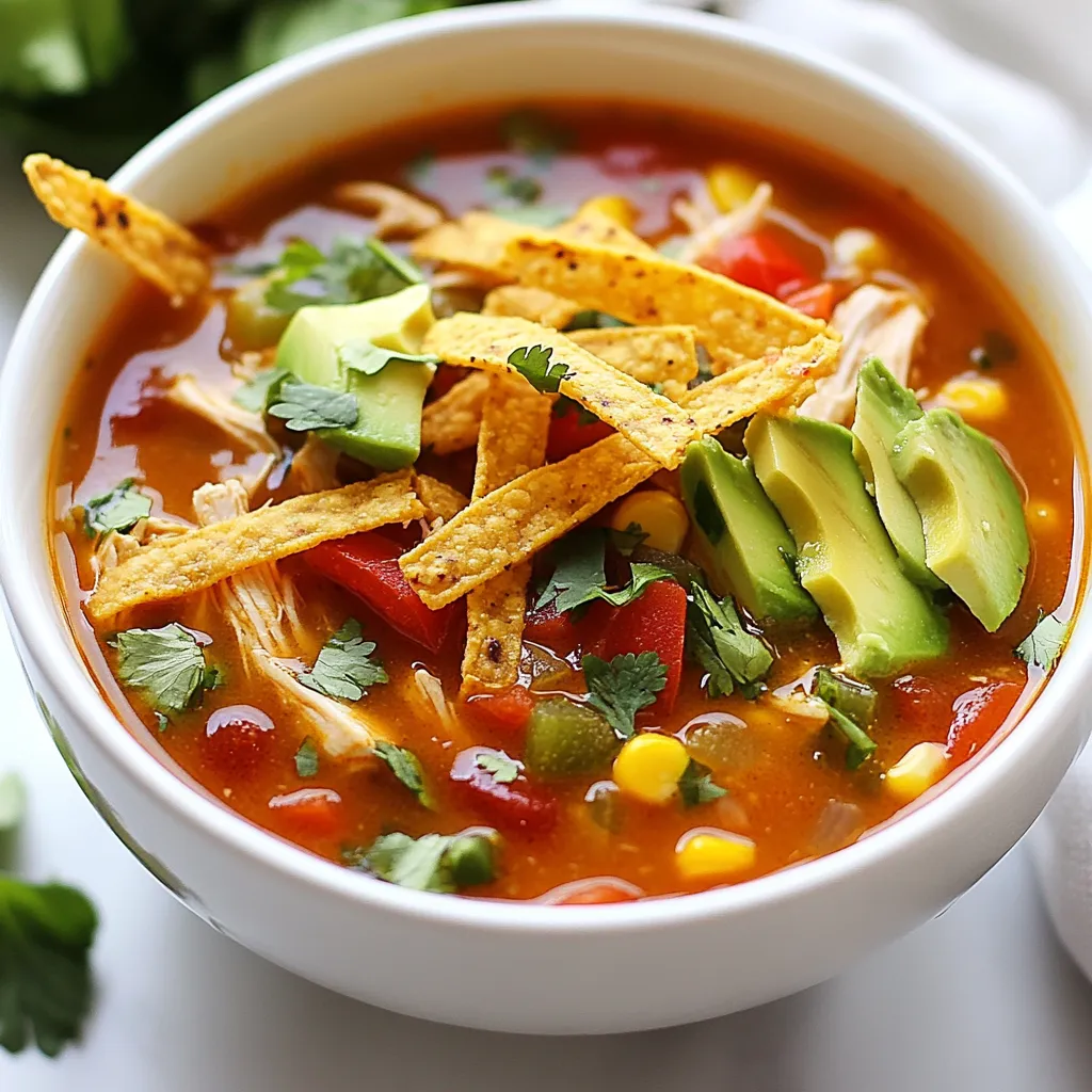 Eine vegetarische Tortilla Suppe ist einfach und lecker. Statt Hähnchen nutzen Sie Gemüse wie Zucchini, Karotten und Mais. Diese Zutaten bringen viel Geschmack. Sie können auch Tofu oder Kichererbsen hinzufügen. Diese bieten eine gute Proteinquelle. Verwenden Sie Gemüsebrühe anstelle von Hühnerbrühe. So bleibt die Suppe ganz pflanzlich. Vergessen Sie nicht, alle Gewürze hinzuzufügen. Sie sind wichtig für den vollen Geschmack!