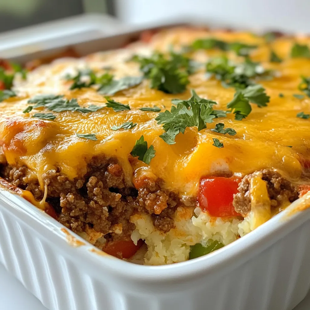 Taco-Gewürz gibt dem Gericht seinen mexikanischen Flair. Kreuzkümmel und Paprika sorgen für Tiefe und Wärme. Diese Gewürze machen den Auflauf lebendig und herzhaft.