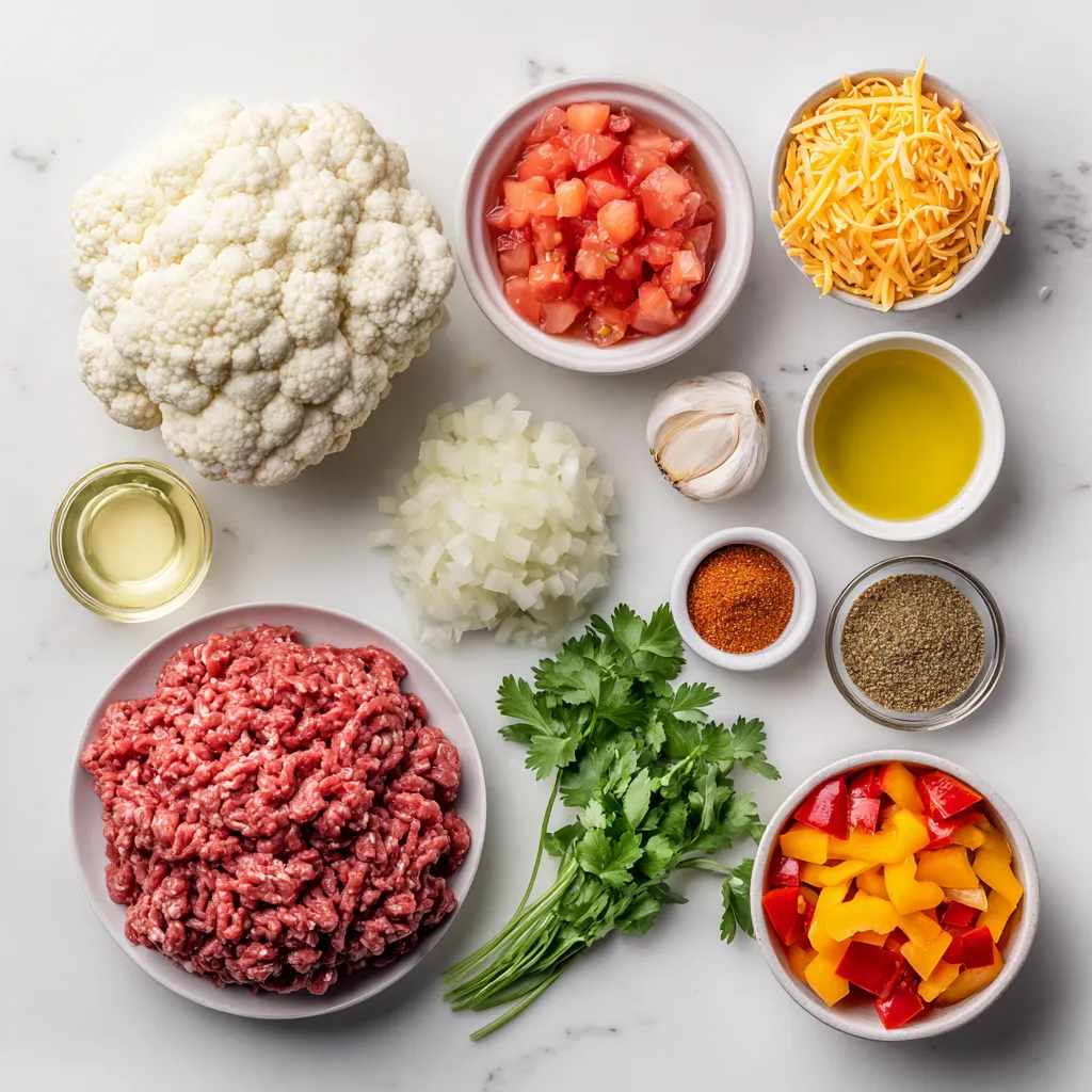 Für den Keto Mexikanischen Rindfleisch Blumenkohl Auflauf brauchst du: