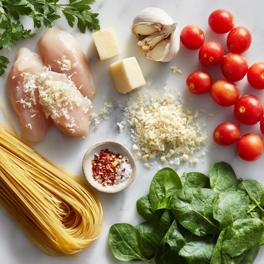 Diese Zutaten machen das Gericht einfach und lecker. Die Linguine oder Spaghetti sind die perfekte Basis. Das Hähnchen bringt Protein, und der Knoblauch sorgt für Geschmack.