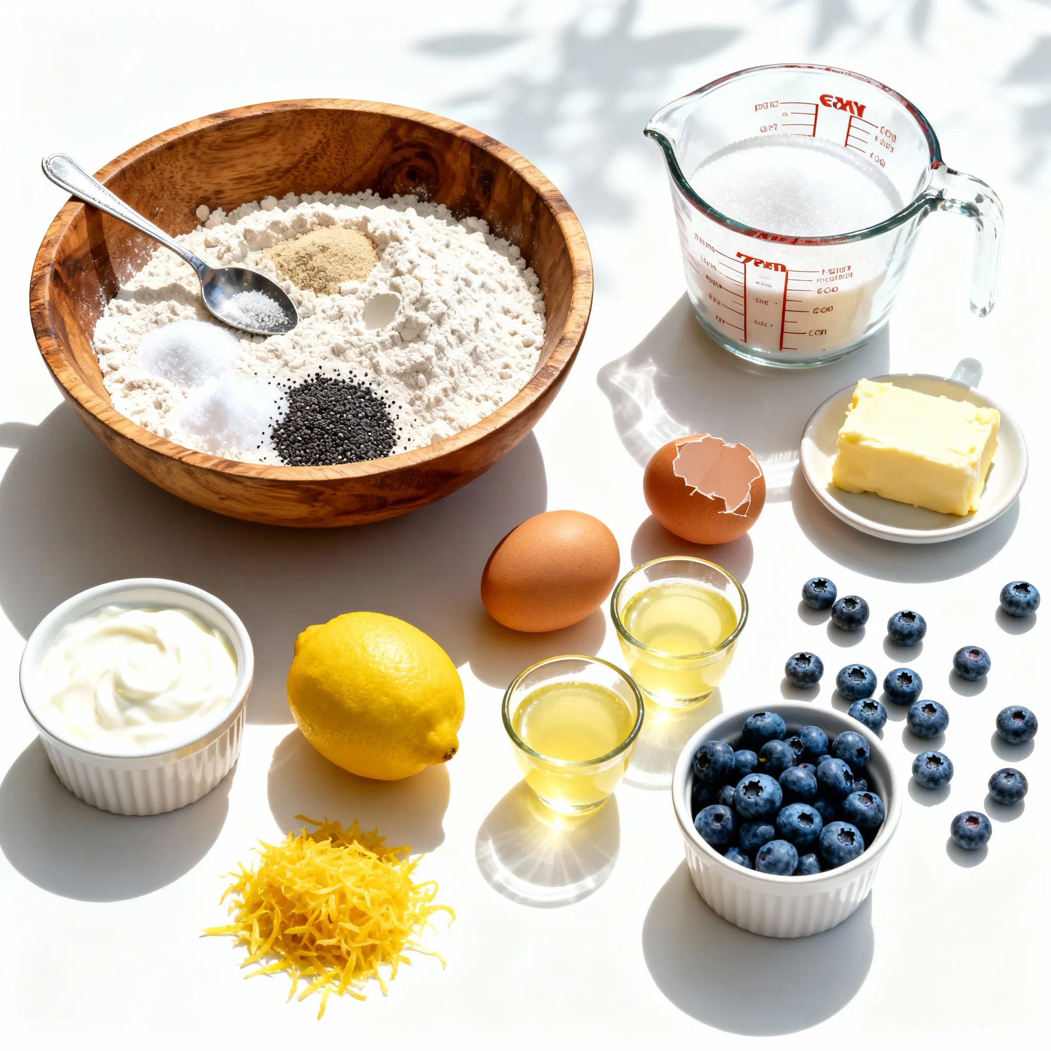 Die Butter macht das Brot weich und saftig. Zucker sorgt für die Süße, die wir lieben. Eier geben Struktur und helfen beim Aufgehen. Zitronenschale und -saft bringen einen frischen, zitrusartigen Geschmack. Joghurt oder saure Sahne machen das Brot noch feuchter. Blaubeeren sind das Herzstück des Rezepts und sorgen für Farbe und Geschmack.