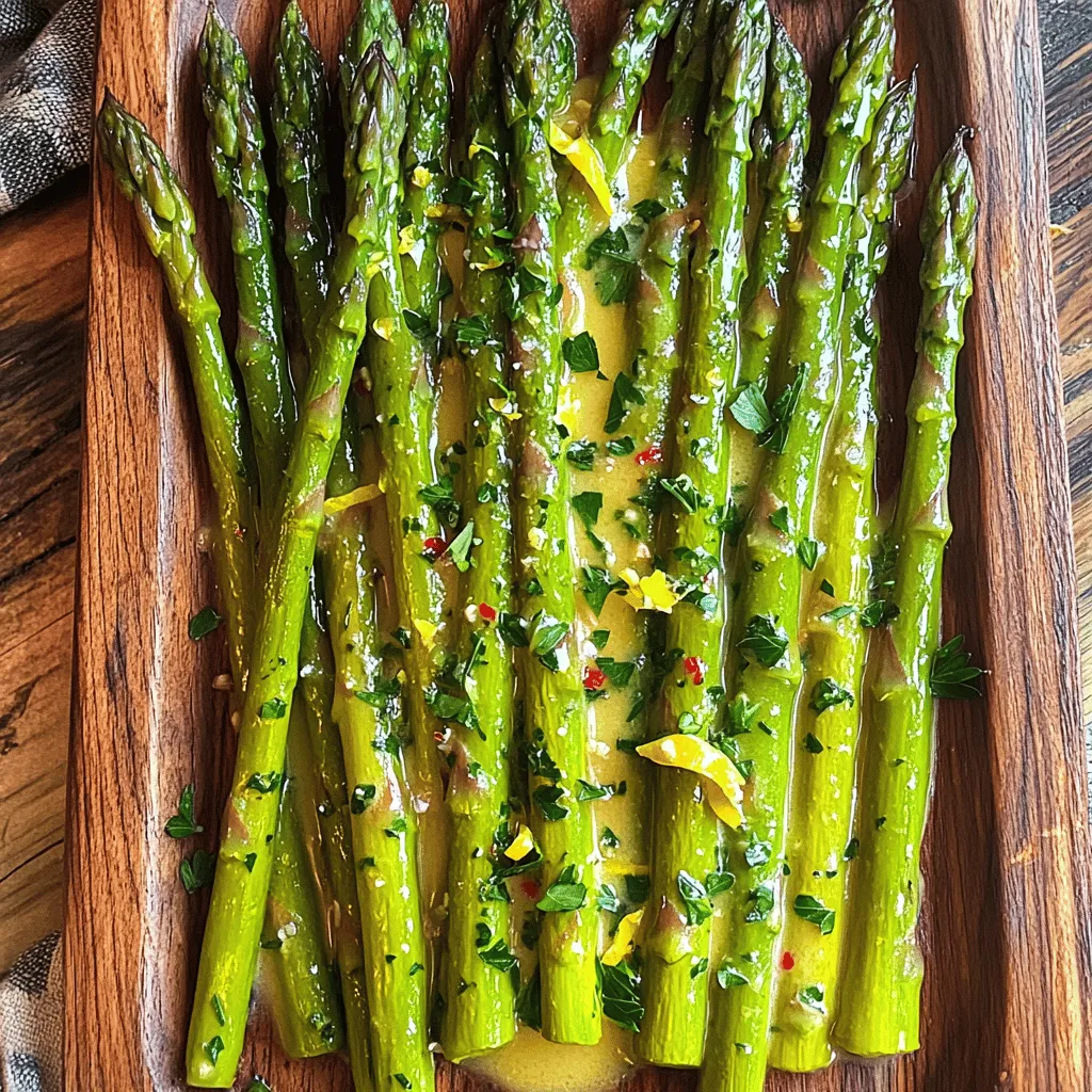 - 450 g frischer Spargel - 4 Esslöffel ungesalzene Butter - 2 Esslöffel frischer Zitronensaft - Abrieb von 1 Zitrone - 2 Knoblauchzehen, fein gehackt - 1 Teelöffel Salz - 1/2 Teelöffel schwarzer Pfeffer - 1/4 Teelöffel rote Chiliflocken (optional) - 2 Esslöffel gehackte frische Petersilie zur Garnierung Die Zutaten für meinen Zitronenbutter-Spargel sind frisch und einfach. Frischer Spargel ist der Star dieses Gerichts. Er sollte knackig und grün sein. Achte darauf, die Enden abzuschneiden, da sie oft hart sind. Butter bringt einen reichen Geschmack. Ungesalzene Butter lässt die anderen Aromen besser zur Geltung kommen. Zitronensaft und Abrieb sorgen für Frische und eine schöne Säure. Knoblauch fügt Tiefe hinzu und macht das Gericht noch aromatischer. Salz und Pfeffer sind die Grundgewürze. Sie bringen die Aromen zusammen. Rote Chiliflocken sind optional, aber sie geben einen kleinen Kick. Petersilie ist nicht nur schön, sondern bringt auch einen frischen Geschmack. - Kalorien: Etwa 120 pro Portion - Fette: 10 g (von der Butter) - Kohlenhydrate: 4 g (hauptsächlich vom Spargel) - Vitamine: Reich an Vitamin K und Folsäure - Mineralstoffe: Enthält Kalium und Eisen Der Spargel hat viele Nährstoffe. Er ist kalorienarm und voller Vitamine. Vitamin K ist wichtig für die Knochengesundheit. Folsäure hilft bei der Zellteilung und ist gut für schwangere Frauen. Die Butter gibt dir Energie, aber achte auf die Menge. Mit den richtigen Portionen bleibt dein Gericht gesund. Egal, ob du es als Beilage oder Hauptgericht servierst, dieser Spargel wird einfach köstlich. Du kannst das vollständige Rezept [hier](#) finden. - Waschen Sie den Spargel gründlich. Achten Sie darauf, Schmutz zu entfernen. - Schneiden Sie die Enden des Spargels ab. Diese Teile sind oft hart und ungenießbar. - Bringen Sie einen Topf mit gesalzenem Wasser zum Kochen. Blanchieren Sie den Spargel für 2-3 Minuten. - Der Spargel sollte leuchtend grün und leicht zart sein. - Übertragen Sie den Spargel sofort in eine Schüssel mit Eiswasser. Das stoppt den Garprozess. - Lassen Sie den Spargel abtropfen und stellen Sie ihn beiseite. - Schmelzen Sie die Butter in einer großen Pfanne bei mittlerer Hitze. - Fügen Sie den fein gehackten Knoblauch hinzu. Sautieren Sie ihn für etwa 1 Minute. - Der Knoblauch sollte aromatisch sein, aber nicht bräunen. - Rühren Sie den frischen Zitronensaft und den Abrieb ein. - Fügen Sie Salz, schwarzen Pfeffer und rote Chiliflocken hinzu. Mischen Sie alles gut. - Geben Sie den blanchierten Spargel in die Pfanne. Werfen Sie ihn gut in der Zitronenbuttersauce. - Kochen Sie alles zusammen für weitere 2-3 Minuten. Der Spargel sollte gleichmäßig warm sein. - Nehmen Sie die Pfanne von der Hitze. Übertragen Sie den Spargel auf eine Servierplatte. - Garnieren Sie das Gericht mit gehackter frischer Petersilie. Servieren Sie es warm. Für das komplette Rezept schauen Sie sich die [Full Recipe] an. Was ist Blanchieren? Blanchieren ist eine Technik zum schnellen Garen von Gemüse. Man taucht das Gemüse in kochendes Wasser. Dies macht die Farben hell und die Textur zart. Danach legt man es in Eiswasser. So stoppt man den Garprozess sofort. Perfekte Garzeit Für Spargel ist die perfekte Garzeit zwei bis drei Minuten. Achte darauf, dass der Spargel leuchtend grün ist. Er sollte leicht knackig bleiben. Wenn er zu lange kocht, wird er weich und verliert seinen Geschmack. Empfehlungen für zusätzliche Gewürze Du kannst den Geschmack von Zitronenbutter-Spargel aufpeppen. Probiere es mit ein wenig Paprika oder frischem Thymian. Diese Gewürze geben dem Gericht eine neue Dimension. Auch etwas Balsamico-Essig kann den Geschmack intensivieren. Variation der Garnitur Garnituren machen das Gericht lebendig. Neben Petersilie kannst du auch geröstete Mandeln verwenden. Sie fügen eine schöne Textur hinzu. Auch Parmesan oder Feta-Käse als Topping sind lecker. Der Kontrast zwischen den Aromen ist einfach toll. {{image_4}} Sie können Parmesan hinzufügen, während der Spargel in der Pfanne ist. Der Käse schmilzt und gibt dem Gericht einen reichhaltigen, herzhaften Geschmack. Parmesan hat auch einen tollen nussigen Geschmack, der gut zur Zitrone passt. Dieser Mix bringt Tiefe in jedes Bissen. Zudem liefert Parmesan einige Nährstoffe, wie Kalzium und Protein. Wenn Sie eine vegane Variante machen möchten, ersetzen Sie die Butter durch pflanzliche Margarine oder Olivenöl. Diese Alternativen bringen auch einen guten Geschmack. Für die Kräuter können Sie frischen Schnittlauch oder Basilikum verwenden. Diese Kräuter sorgen für Frische und Farbe. Sie können auch geräucherte Paprika oder Kreuzkümmel hinzufügen, um mehr Tiefe zu erreichen. Sie können übrig gebliebenen Spargel im Kühlschrank oder in der Gefriertruhe aufbewahren. Im Kühlschrank bleibt der Spargel frisch für etwa 3 bis 5 Tage. Wickeln Sie ihn in ein feuchtes Papiertuch, um Feuchtigkeit zu halten. Lagern Sie ihn dann in einem luftdichten Behälter. Wenn Sie den Spargel länger aufbewahren möchten, frieren Sie ihn ein. Blanchieren Sie ihn zuerst kurz, um die Farbe und den Geschmack zu erhalten. Legen Sie den blanchierten Spargel in einen Gefrierbeutel und entfernen Sie so viel Luft wie möglich. Im Gefrierfach bleibt er bis zu 6 Monate haltbar. Die beste Methode, um Spargel wieder warm zu machen, ist das Dämpfen. Diese Methode erhält die zarte Textur. Legen Sie den Spargel in einen Dampfkorb über kochendes Wasser. Dämpfen Sie ihn für etwa 2 bis 3 Minuten, bis er wieder heiß ist. Eine andere Möglichkeit ist, ihn in der Mikrowelle zu erwärmen. Legen Sie den Spargel auf einen mikrowellengeeigneten Teller und decken Sie ihn mit einem feuchten Papiertuch ab. Erwärmen Sie ihn in kurzen Intervallen von 30 Sekunden, bis er warm ist. Vermeiden Sie es, den Spargel zu lange zu erhitzen, da er sonst matschig werden kann. Frisch zubereiteter Spargel bleibt im Kühlschrank etwa 3 bis 5 Tage haltbar. Achten Sie darauf, ihn in einem 