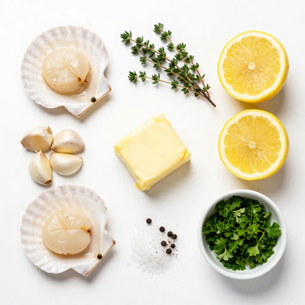 Zuerst bereite alle Zutaten vor. Du brauchst 450 g Jakobsmuscheln, 60 g ungesalzene Butter und 3 gehackte Knoblauchzehen. Vergiss nicht die Schale einer Zitrone. Frischer Zitronensaft ist auch wichtig, also presse 30 ml aus. Du benötigst auch 1 Teelöffel frische Thymianblätter und etwas Salz und Pfeffer. Schließlich, schnapp dir frische Petersilie und Zitronenschnitze für die Garnitur. Das alles macht deine Mahlzeit frisch und lecker.