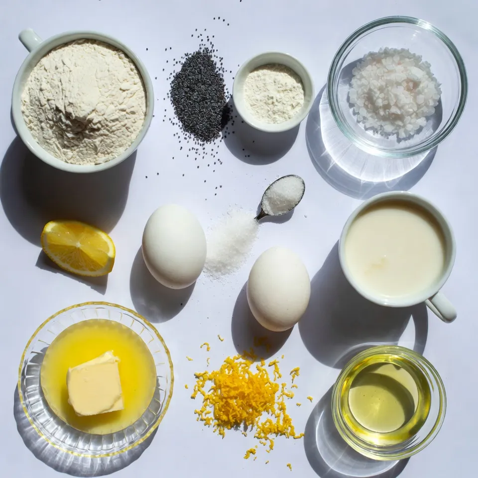 Für die perfekten Zitronen-Mohn-Pfannkuchen brauche ich einige einfache, aber wichtige Zutaten. Hier ist die Liste: