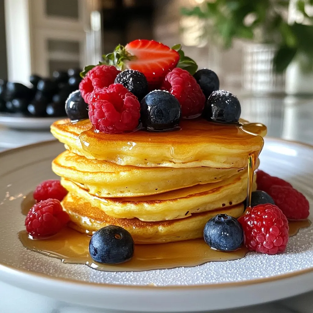 - Vielseitigkeit: Diese Pfannkuchen lassen sich hervorragend mit verschiedenen Toppings wie frischen Beeren und Ahornsirup anpassen, um jedem Geschmack gerecht zu werden.
