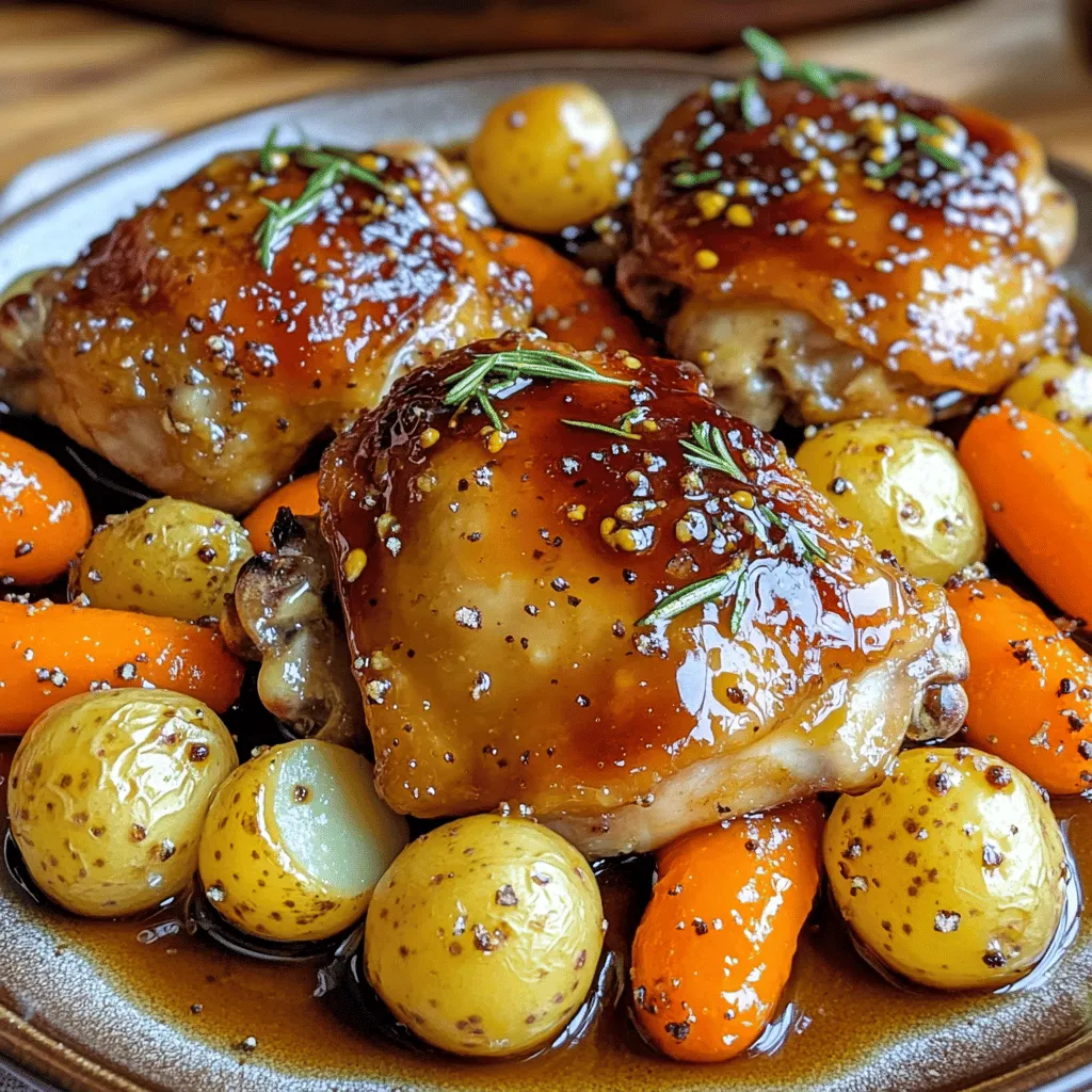 Die Hauptzutaten bringen Geschmack und Textur. Die Hähnchenschenkel sind zart und saftig. Babykartoffeln sind klein und perfekt zum Kochen. Karotten fügen eine süße Note hinzu. Der Ahornsirup gibt Süße, während der Dijon-Senf einen würzigen Kick bringt.