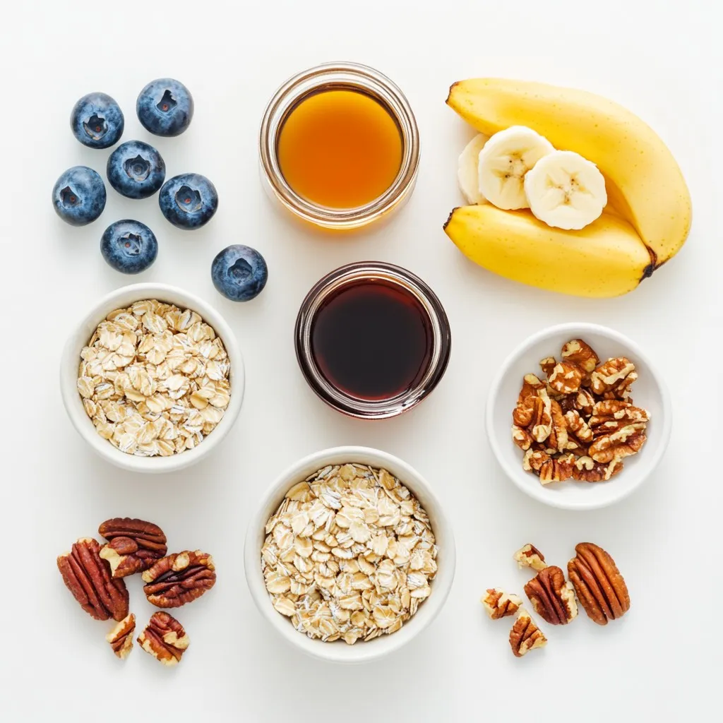 Die Hauptzutaten sind einfach und gesund. Zarte Haferflocken sind der Grundbaustein. Sie sind reich an Ballaststoffen und halten lange satt. Mandelmilch ist eine tolle, leichte Option. Sie gibt dem Gericht einen nussigen Geschmack. Ahornsirup bringt die süße Note, die wir lieben.
