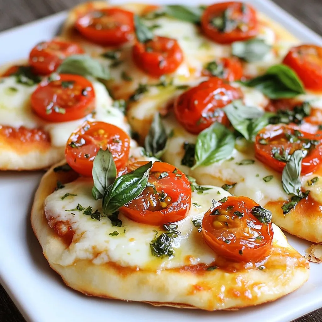Schneiden Sie die Pizzas in Viertel. Servieren Sie sie heiß als Vorspeise oder Hauptgericht. Genießen Sie Ihre köstlichen Margherita Naan-Pizzas!