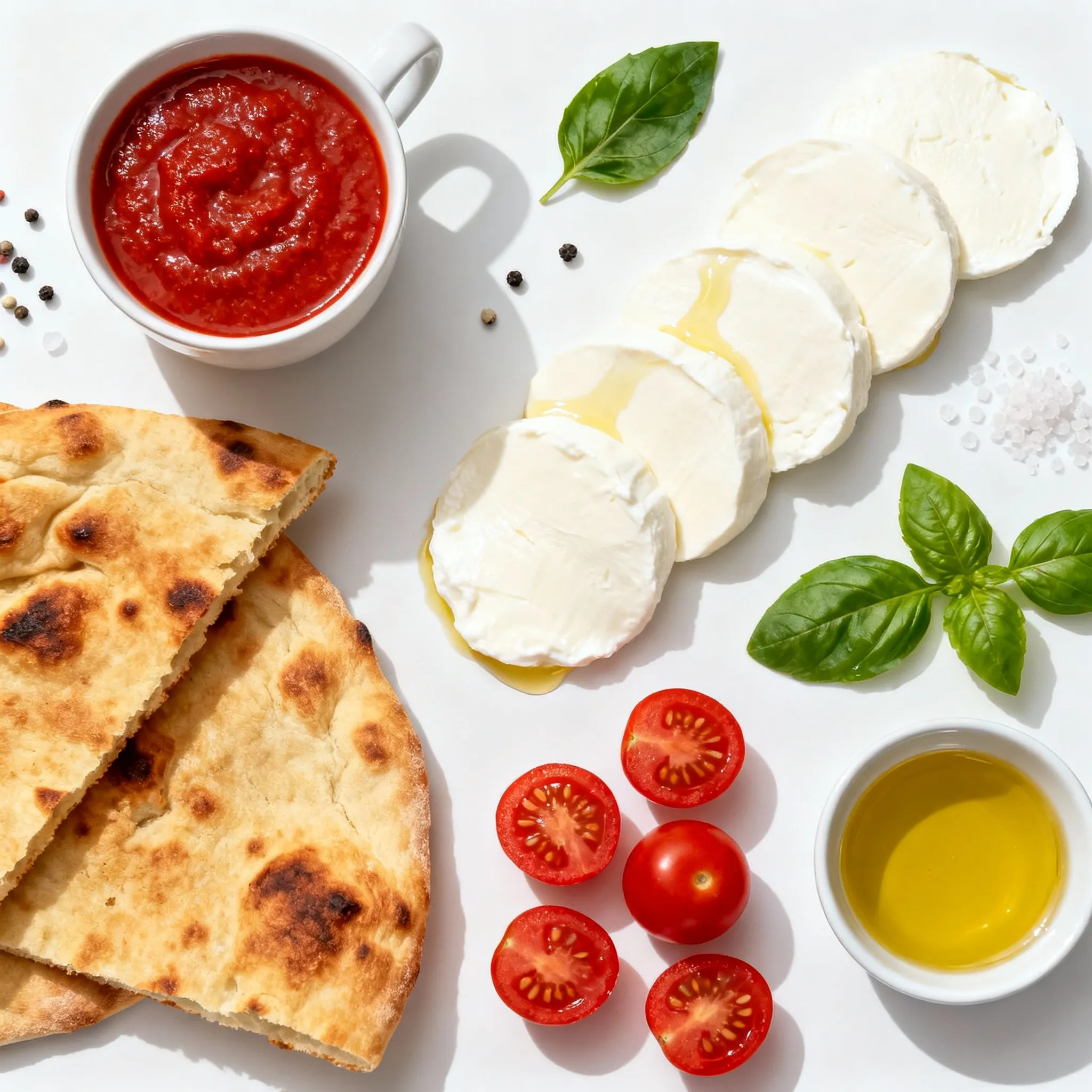 Für die Margherita Naan-Pizzas brauchst du folgende Hauptzutaten:
