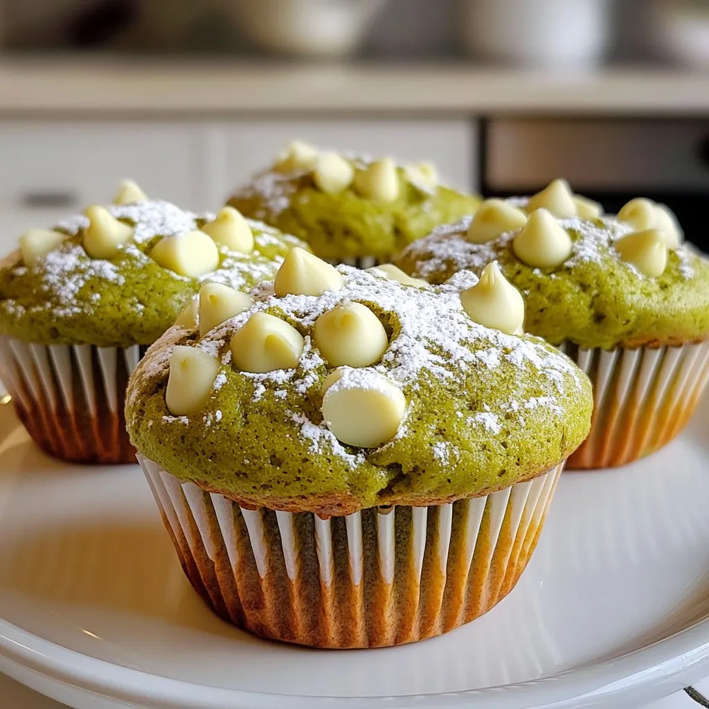 Leckere Muffins mit Matcha und weißen Schokoladenstückchen.