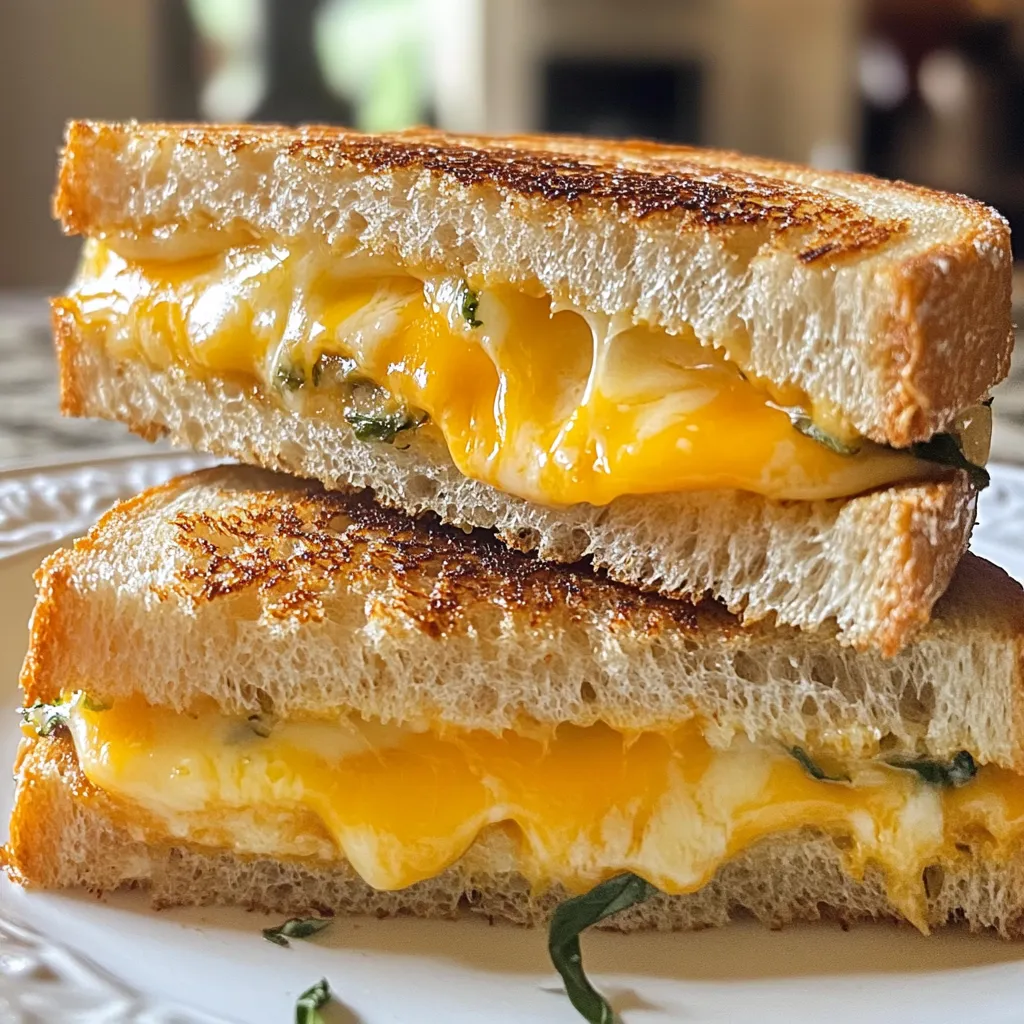 Für ein köstliches gegrilltes Käse-Sandwich benötigst du die richtigen Zutaten. Hier sind sie: - 4 Scheiben Sauerteigbrot - 2 Esslöffel ungesalzene Butter, weich - 1 Tasse scharfer Cheddar-Käse, gerieben - 1/2 Tasse Gruyère-Käse, gerieben - 1 Esslöffel frisches Basilikum, gehackt (optional) - 1/4 Teelöffel Knoblauchpulver - Salz und Pfeffer nach Geschmack Diese Zutaten sorgen für einen tollen Geschmack und eine schöne Textur. Die Wahl des Käses ist entscheidend. Ich empfehle, eine Kombination aus scharfem Cheddar und Gruyère zu verwenden. Cheddar bringt eine kräftige Note mit, während Gruyère für eine cremige Schmelze sorgt. Du kannst auch andere Käsesorten ausprobieren, wie Mozzarella für mehr Dehnung oder Brie für einen milderen Geschmack. Das Brot ist die Basis deines Sandwiches. Sauerteigbrot ist ideal, da es außen knusprig und innen weich ist. Du kannst auch Vollkornbrot oder Ciabatta verwenden. Achte darauf, dass das Brot frisch ist. So vermeidest du ein matschiges Sandwich. {{ingredient_image_2}} Beginne mit der Auswahl der richtigen Zutaten. Du brauchst: - 4 Scheiben Sauerteigbrot - 2 Esslöffel ungesalzene Butter, weich - 1 Tasse scharfer Cheddar-Käse, gerieben - 1/2 Tasse Gruyère-Käse, gerieben - 1 Esslöffel frisches Basilikum, gehackt (optional) - 1/4 Teelöffel Knoblauchpulver - Salz und Pfeffer nach Geschmack Stelle sicher, dass die Butter weich ist. Das macht das Streichen einfacher. Reibe den Käse im Voraus. So sparst du Zeit. Nimm eine kleine Schüssel. Mische die weiche Butter, Knoblauchpulver, eine Prise Salz und Pfeffer. Rühre gut um. Diese aromatische Butter bringt viel Geschmack. Du kannst auch frisches Basilikum hinzufügen. Es fügt eine frische Note hinzu. Verteile die Butter gleichmäßig auf einer Seite jeder Brotscheibe. Achte darauf, dass du genug Butter verwendest. Das macht die Kruste knusprig und goldbraun. Erhitze eine Pfanne auf mittlerer Hitze. Lege zwei Brotscheiben mit der unbutterten Seite nach oben in die Pfanne. Bedecke sie gleichmäßig mit Cheddar und Gruyère. Wenn du möchtest, streue etwas Basilikum darüber. Legen die anderen zwei Brotscheiben darauf, aber mit der buttrigen Seite nach außen. Grillen die Sandwiches für 3-4 Minuten. Drücke leicht mit einem Pfannenwender nach unten. Das sorgt für eine knusprige Kruste. Wende die Sandwiches vorsichtig um und grille die andere Seite. Warte, bis der Käse schmilzt und die Kruste goldbraun wird. Nach dem Grillen lass die Sandwiches eine Minute ruhen. So setzen sich die Aromen. Dann halbieren und heiß servieren. Die perfekte Grilltemperatur liegt bei mittlerer Hitze. So wird das Brot goldbraun und der Käse schmilzt gut. Grillen Sie das Sandwich etwa 3 bis 4 Minuten pro Seite. Achten Sie auf die Farbe des Brotes. Wenn es goldbraun ist, wenden Sie es. Um den Käse gleichmäßig zu schmelzen, verwenden Sie eine Mischung aus Käsesorten. Cheddar und Gruyère sind ideal. Diese Käsesorten schmelzen gut und geben tollen Geschmack. Drücken Sie während des Grillens leicht mit einem Pfannenwender auf das Sandwich. So wird der Käse schneller weich. Gewürze und frische Kräuter machen Ihr Käse-Sandwich besonders. Fügen Sie Knoblauchpulver zur Butter hinzu. Das bringt viel Aroma. Frisches Basilikum ist ein weiterer toller Zusatz. Es passt gut zu Käse und gibt einen frischen Geschmack. Experimentieren Sie mit Ihren Lieblingsgewürzen für mehr Vielfalt. Pro Tipps Wählen Sie den richtigen Käse: Eine Mischung aus scharfem Cheddar und Gruyère sorgt für ein perfektes Geschmacksprofil. Experimentieren Sie auch mit anderen Käsesorten wie Fontina oder Mozzarella für unterschiedliche Texturen. Die richtige Hitze: Grillen Sie das Sandwich bei mittlerer Hitze, um sicherzustellen, dass der Käse vollständig schmilzt, ohne dass das Brot verbrennt. Ein langsames Grillen sorgt für eine goldbraune, knusprige Kruste. Butter gleichmäßig verteilen: Stellen Sie sicher, dass die Butter gleichmäßig auf das Brot aufgetragen wird, um eine gleichmäßige Bräunung und Knusprigkeit zu erreichen. Verwenden Sie ein Buttermesser oder einen Silikonpinsel. Sandwich ruhen lassen: Lassen Sie das Sandwich nach dem Grillen eine Minute ruhen, bevor Sie es schneiden. Dies hilft, dass der geschmolzene Käse nicht ausläuft und das Sandwich stabil bleibt. {{image_4}} Viele lieben es, ihr Käse-Sandwich zu verfeinern. Speck bringt einen tollen Crunch. Er passt gut zu dem schmelzenden Käse. Tomaten geben Frische und saftige Noten. Du kannst frische Tomatenscheiben hinzufügen oder sogar getrocknete Tomaten verwenden. Beides schmeckt himmlisch. Für Veganer gibt es viele Optionen. Du kannst pflanzliche Butter nutzen. Statt Käse nimmst du veganen Käse. Achte darauf, dass er gut schmilzt. Glutenfreies Brot ist einfach zu finden. Probiere verschiedene Sorten aus, um die beste Textur zu finden. Käse ist der Star deines Sandwiches. Experimentiere mit Gouda, Mozzarella oder sogar Blauschimmelkäse. Jeder Käse hat seinen eigenen Geschmack. Auch das Brot kann variieren. Vollkornbrot oder Ciabatta geben einen neuen Twist. Probiere es aus und finde deine Lieblingskombination! Um Reste Ihres gegrillten Käse-Sandwiches gut zu lagern, lassen Sie es zuerst abkühlen. Wickeln Sie es dann in Frischhaltefolie oder legen Sie es in einen luftdichten Behälter. So bleibt das Sandwich frisch. Sie können es bis zu zwei Tage im Kühlschrank aufbewahren. Achten Sie darauf, es nicht zu lange zu lagern, damit der Geschmack erhalten bleibt. Zum Wiedererwärmen gibt es mehrere Optionen. Die beste Methode ist die Pfanne. Erhitzen Sie die Pfanne bei mittlerer Hitze und legen Sie das Sandwich hinein. Grillen Sie es für ein paar Minuten auf jeder Seite. So wird das Brot wieder knusprig und der Käse schmilzt gleichmäßig. Alternativ können Sie auch einen Toaster oder Mikrowelle nutzen, aber das Brot wird nicht knusprig sein. Um Sumpfen und Matsche zu vermeiden, lassen Sie das Sandwich nach dem Grillen ruhen. Dies hilft, den