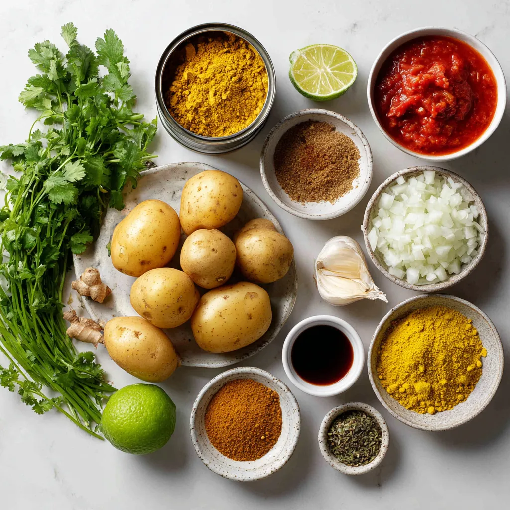 Die Basis für mein persisches Kartoffel-Curry sind frische und einfache Zutaten. Hier sind die Hauptzutaten, die du brauchst: