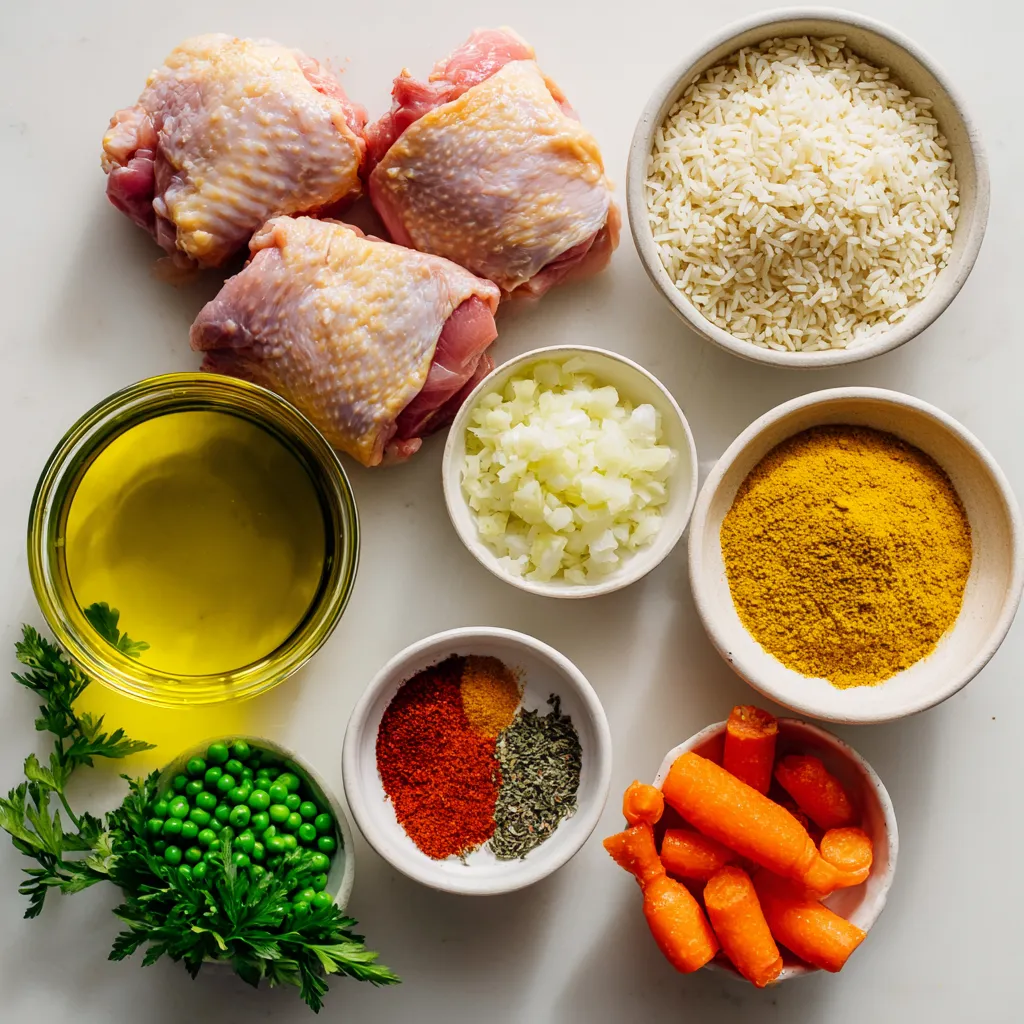 Hauptzutaten für Instant Pot Hühnchen & Reis