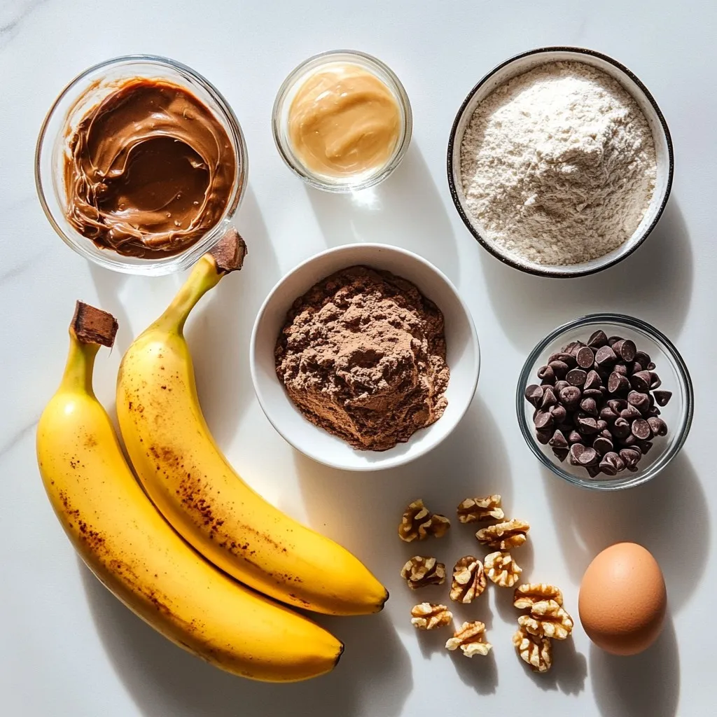 Hauptzutaten für Schokoladen-Erdnussbutter-Bananenbrot