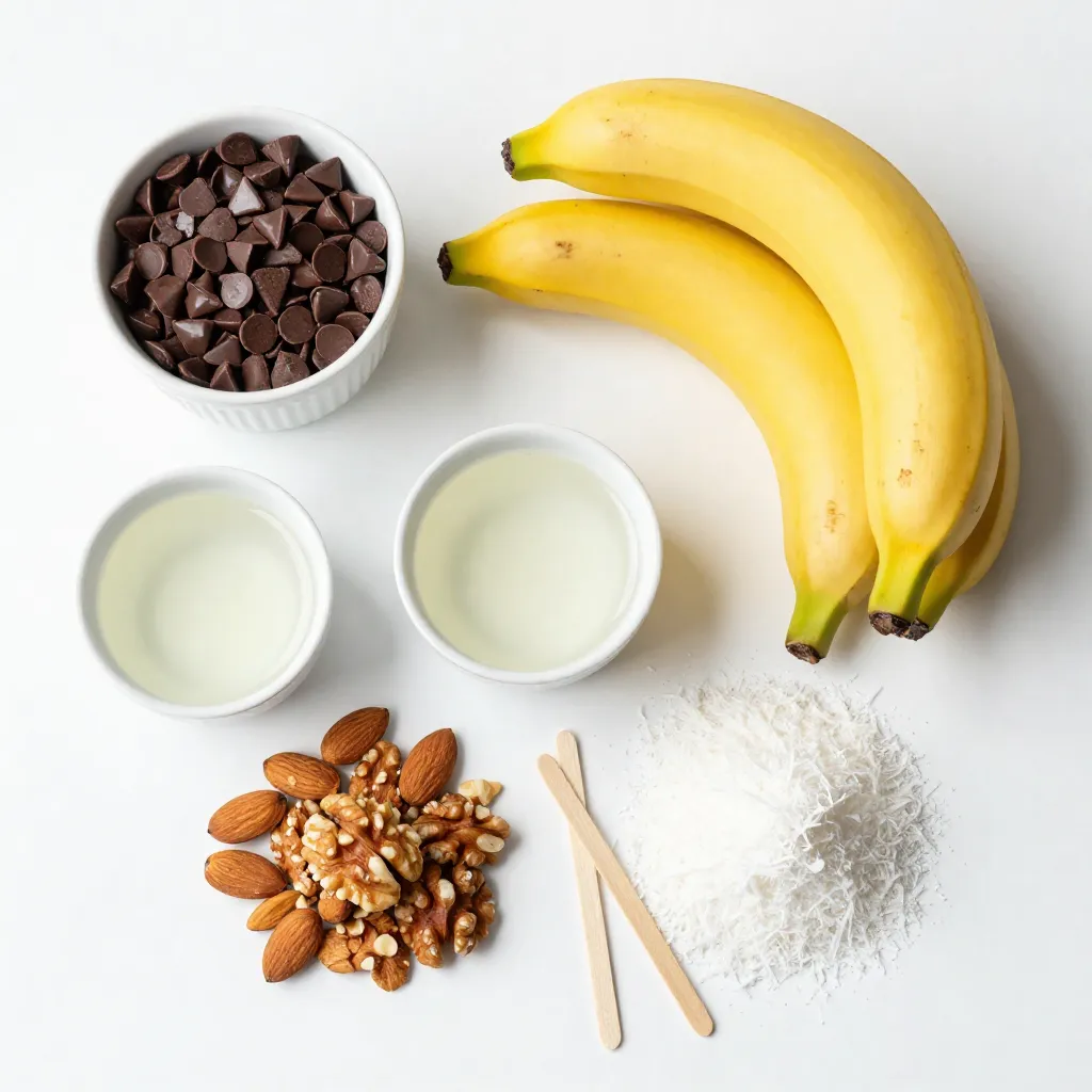 Hauptzutaten für Schokoladenüberzogene Bananenlutscher