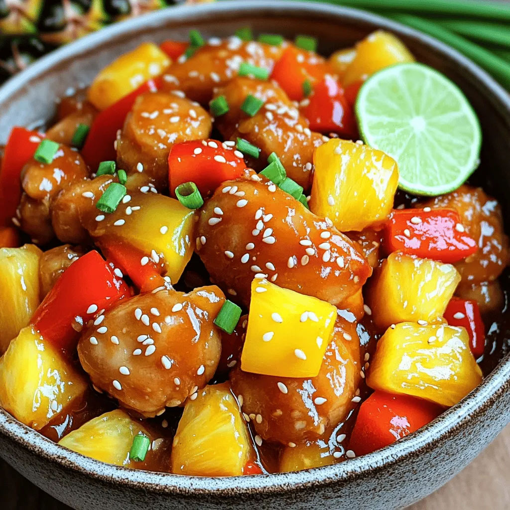 In diesem Rezept verwenden wir zartes Hähnchen. Das bringt viel Geschmack. Die bunten Paprika machen das Gericht lebendig. Sie sorgen für eine schöne Farbe und einen knackigen Biss. Ananas bringt die süße Note, die perfekt mit der Soße harmoniert.