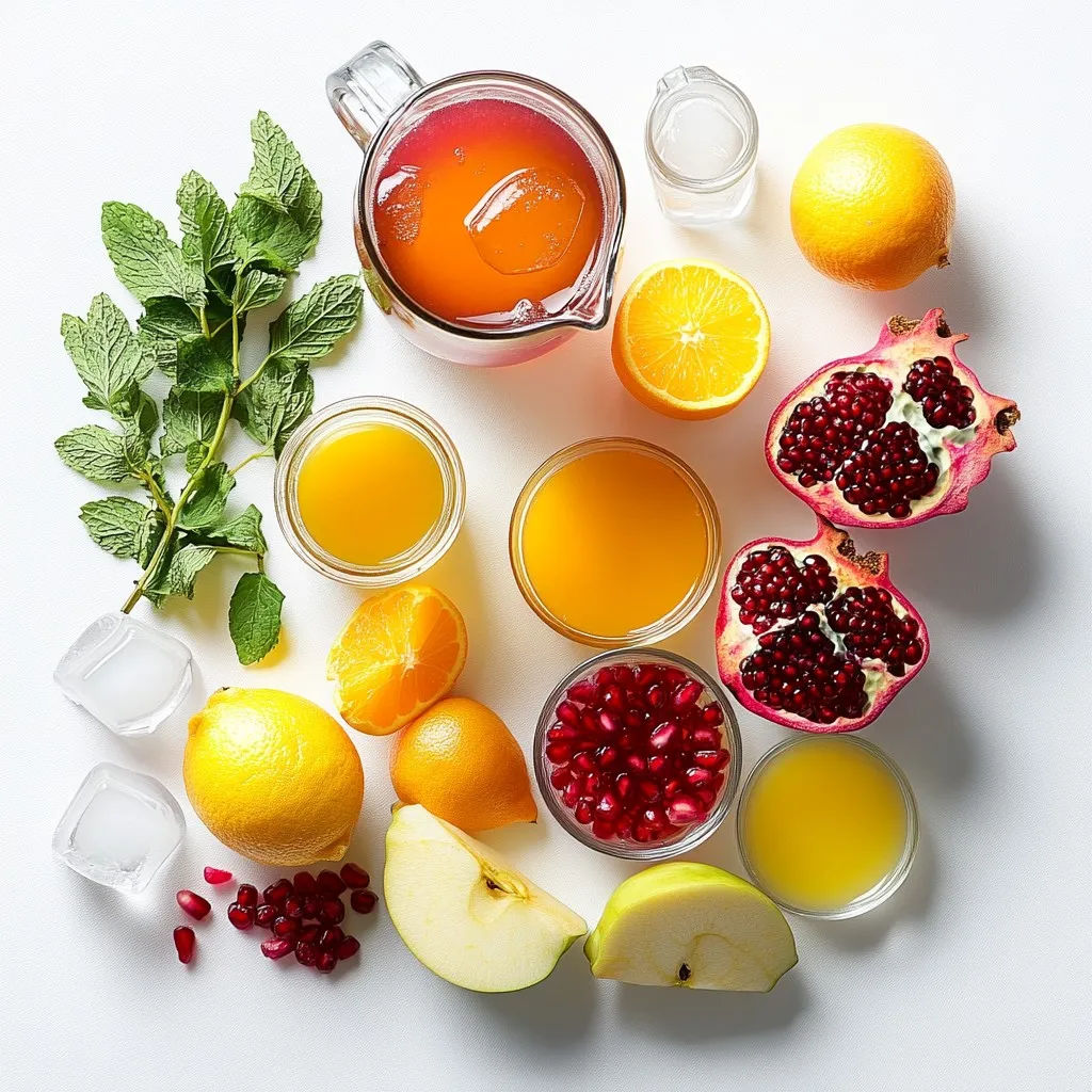 Die Hauptzutaten bilden die Basis für diesen erfrischenden Punsch. Granatapfelsaft bringt eine süße und fruchtige Tiefe. Sprudelwasser sorgt für die prickelnde Frische. Der frisch gepresste Orangensaft fügt einen zarten Zitrusgeschmack hinzu.