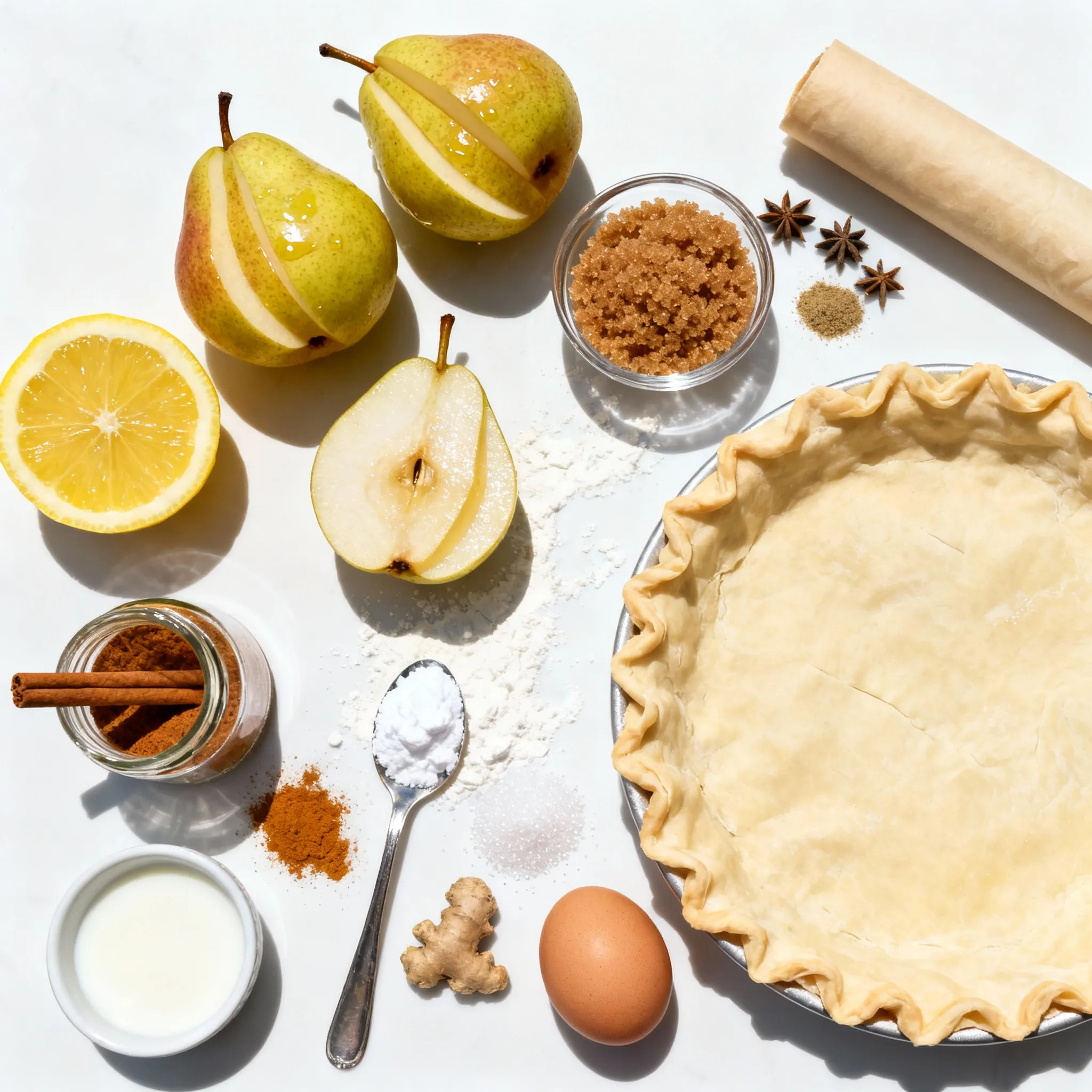 Heize deinen Ofen auf 200°C vor. Dies sorgt für eine knusprige Kruste. Während der Ofen heizt, bereite die Birnen vor. Schäle und entkerne die Birnen. Schneide sie in dünne Scheiben. Gib die Birnen in eine Schüssel. Füge 1 Esslöffel Zitronensaft hinzu, um die Frische zu erhalten. Vermische die Birnen mit 2 Esslöffeln braunem Zucker, 1 Teelöffel Zimt, 1/2 Teelöffel Muskatnuss und 1/4 Teelöffel Ingwer. Die Speisestärke hilft, den Saft zu binden. Lass die Mischung 10 Minuten ruhen, damit sie saftig wird.