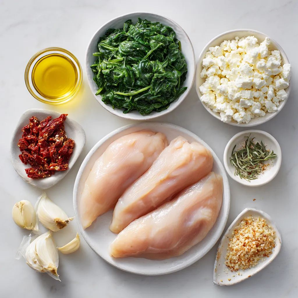 Diese Hauptzutaten sind der Schlüssel zu einem leckeren Gericht. Die Hähnchenbrust liefert viel Protein und ist zart. Frischer Spinat bringt eine schöne Farbe und viele Nährstoffe. Feta-Käse fügt einen salzigen, cremigen Geschmack hinzu, der perfekt mit dem Spinat harmoniert.