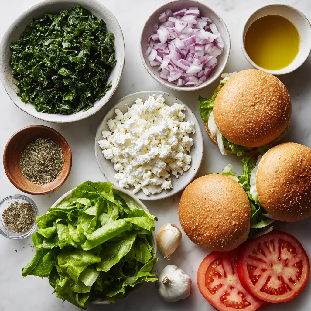 Für die perfekten Spinach Feta Stuffed Turkey Burger brauchen wir einige Hauptzutaten. Hier sind sie: