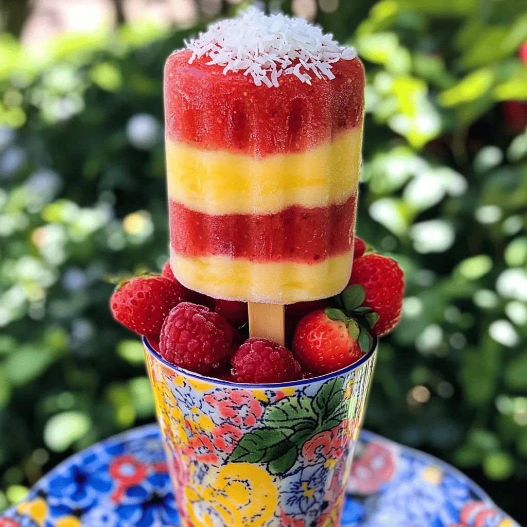 Verwende Toppings wie geriebenen Kokos oder Granola. Das gibt den Pops einen extra Biss. So machst du sie nicht nur lecker, sondern auch hübsch zum Ansehen!