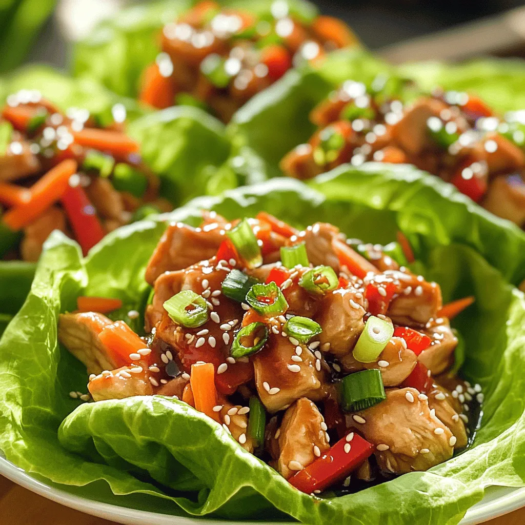 Für diese leckeren Teriyaki-Hühnchen-Lattichwickel brauchst du: - 450 g Hähnchenbrust, gewürfelt - 60 ml Sojasauce (oder Tamari für glutenfrei) - 2 Esslöffel Honig - 1 Esslöffel Reisessig - 1 Teelöffel Sesamöl - 2 Knoblauchzehen, fein gehackt - 1 Teelöffel frischer Ingwer, gerieben - 1 rote Paprika, gewürfelt - 1 Tasse Karotten, geraspelt - 3 Frühlingszwiebeln, in Ringe geschnitten - 1 Esslöffel Sesamsamen (zur Garnierung) - 1 Kopfsalat wie Butter- oder Eisbergsalat, Blätter getrennt Diese Zutaten machen das Gericht frisch und voller Geschmack. Die Kombination aus Hähnchen und Gemüse sorgt für eine tolle Textur. Du kannst die Lattichwickel leicht anpassen. Hier sind einige Ideen: - Avocado für Cremigkeit - Gurke für mehr Frische - Chili für einen scharfen Kick - Nüsse wie Erdnüsse oder Cashews für Crunch Diese Zutaten bringen mehr Vielfalt in dein Gericht. So bleibt es spannend und lecker. Wenn du glutenfrei essen möchtest, gibt es einfache Optionen. - Verwende Tamari anstelle von Sojasauce. - Achte darauf, dass alle anderen Zutaten glutenfrei sind. So kannst du die Teriyaki-Hühnchen-Lattichwickel ohne Sorge genießen. Sie schmecken trotzdem großartig! Um die Teriyaki-Sauce zu machen, nimm eine große Schüssel. Füge 60 ml Sojasauce hinzu, oder benutze Tamari für glutenfrei. Gib dann 2 Esslöffel Honig dazu. Dieser macht die Sauce süß. Füge 1 Esslöffel Reisessig für etwas Säure hinzu. Ein Teelöffel Sesamöl bringt den typischen Geschmack. Hacke 2 Knoblauchzehen fein und füge sie hinzu. Reibe 1 Teelöffel frischen Ingwer und mische alles gut. Rühre, bis die Sauce gleichmäßig aussieht. Jetzt kommt das Hähnchen. Nimm 450 g gewürfelte Hähnchenbrust und erhitze eine große Pfanne bei mittlerer Hitze. Lege das Hähnchen in die Pfanne und brate es für etwa 5 Minuten. Das Hähnchen muss goldbraun sein. Gieße dann die Teriyaki-Sauce über das Hähnchen. Rühre gut um, damit die Sauce das Hähnchen bedeckt. Lass es für 3 bis 4 Minuten köcheln, bis die Sauce etwas dicker wird. Jetzt kommt das Gemüse! Füge 1 gewürfelte rote Paprika und 1 Tasse geraspelte Karotten in die Pfanne. Rühre alles gut um und koche es für 2 bis 3 Minuten. Das Gemüse soll zart, aber knackig bleiben. Nimm die Pfanne vom Herd und rühre 3 geschnittene Frühlingszwiebeln unter. Nach Belieben nachwürzen. Zum Servieren nimm ein Salatblatt, lege die Hühnchen-Mischung hinein und garniere mit Sesamsamen. Wickel das Blatt um die Füllung und genieße! Um das Hähnchen perfekt zu würzen, nutze eine ausgewogene Mischung. Kombiniere Sojasauce, Honig, Reisessig und Sesamöl. Diese Zutaten geben dem Hähnchen einen tollen Geschmack. Achte darauf, das Hähnchen gleichmäßig mit der Sauce zu bedecken. So wird jede Biss lecker. Wähle einen zarten Salat wie Butter- oder Eisbergsalat. Diese Blätter sind knusprig und leicht. Sie halten die Füllung gut und machen das Essen einfach. Achte darauf, die Blätter vorsichtig zu trennen, damit sie nicht reißen. Für eine schöne Präsentation lege die gefüllten Salatblätter auf einen großen Teller. Streue Sesamsamen darüber. Dies sorgt für Farbe und Textur. Du kannst auch ein paar frische Kräuter hinzufügen. So sieht dein Gericht einladend aus und schmeckt noch besser. {{image_4}} Für eine fleischlose Option kannst du Tofu oder Tempeh verwenden. Schneide Tofu in Würfel und brate ihn goldbraun. Verwende die gleiche Teriyaki-Sauce, um den Geschmack zu intensivieren. Gemüse wie Zucchini oder Pilze passen auch gut. Sie geben dir den gewünschten Biss und Geschmack. Um noch mehr asiatische Aromen zu kreieren, füge fünf Gewürze hinzu. Eine Prise Fünf-Gewürz-Pulver gibt dem Gericht Tiefe. Auch frischer Koriander oder Thai-Basilikum bringen eine frische Note. Diese Kräuter kannst du einfach vor dem Servieren darüber streuen. Wenn du es scharf magst, füge Sriracha zur Sauce hinzu. Ein Teelöffel reicht für einen kick. Du kannst auch eine scharfe Paprika in die Mischung geben. So wird dein Gericht würzig und aufregend. Probiere es aus, um die perfekte Balance zu finden. Um die Teriyaki-Hühnchen-Lattichwickel frisch zu halten, lege sie in einen luftdichten Behälter. Du kannst sie auch in Frischhaltefolie wickeln. Dies hilft, die Feuchtigkeit zu bewahren. Stelle sicher, dass du die Lattichblätter getrennt von der Füllung aufbewahrst. So bleiben sie knackig und frisch. Die Teriyaki-Hühnchen-Füllung bleibt im Kühlschrank etwa 3 bis 4 Tage gut. Die Lattichblätter solltest du am besten am Tag der Zubereitung verwenden. Wenn du sie länger aufbewahrst, werden sie schnell welk. Zum Aufwärmen kannst du die Füllung in einer Pfanne bei mittlerer Hitze erhitzen. Rühre gut um, damit sie gleichmäßig warm wird. Du kannst auch die Mikrowelle verwenden. Erwärme die Füllung in einer Schüssel für etwa 1-2 Minuten. Achte darauf, dass sie nicht zu trocken wird. Frische Lattichblätter kannst du dann wieder verwenden. Die Zubereitung der Teriyaki-Hühnchen-Lattichwickel dauert insgesamt 25 Minuten. Davon sind 15 Minuten für die Vorbereitung und 10 Minuten für das Kochen. Das ist schnell und einfach, perfekt für ein schnelles Abendessen. Ja, du kannst die Teriyaki-Sauce im Voraus zubereiten. Mische einfach die Sojasauce, Honig, Reisessig, Sesamöl, Knoblauch und Ingwer in einer Schüssel. Bewahre die Sauce in einem luftdichten Behälter im Kühlschrank auf. So sparst du Zeit, wenn du die Lattichwickel machst. Zu den Teriyaki-Hühnchen-Lattichwickeln passen viele Beilagen gut. Hier sind einige Ideen: - Gedämpfter Reis oder Quinoa - Eine frische Gurkensalat - Knackiges Gemüse wie Karotten oder Brokkoli - Miso-Suppe für einen herzhaften Genuss Diese Beilagen ergänzen den Geschmack der Lattichwickel perfekt. Die Teriyaki-Hühnchen-Lattichwickel sind einfach zuzubereiten und sehr lecker. Wir haben die wichtigsten Zutaten besprochen, von Hauptzutaten bis zu glutenfreien Alternativen. Die Schritt-für-Schritt-Anleitung macht es leicht, die 