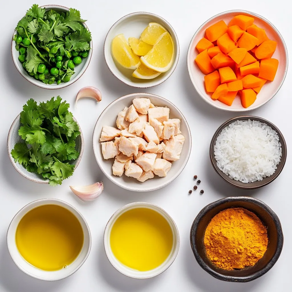 Für unsere Turmeric Chicken Rice Soup nutzen wir frische und einfache Zutaten. Hier ist die Liste: