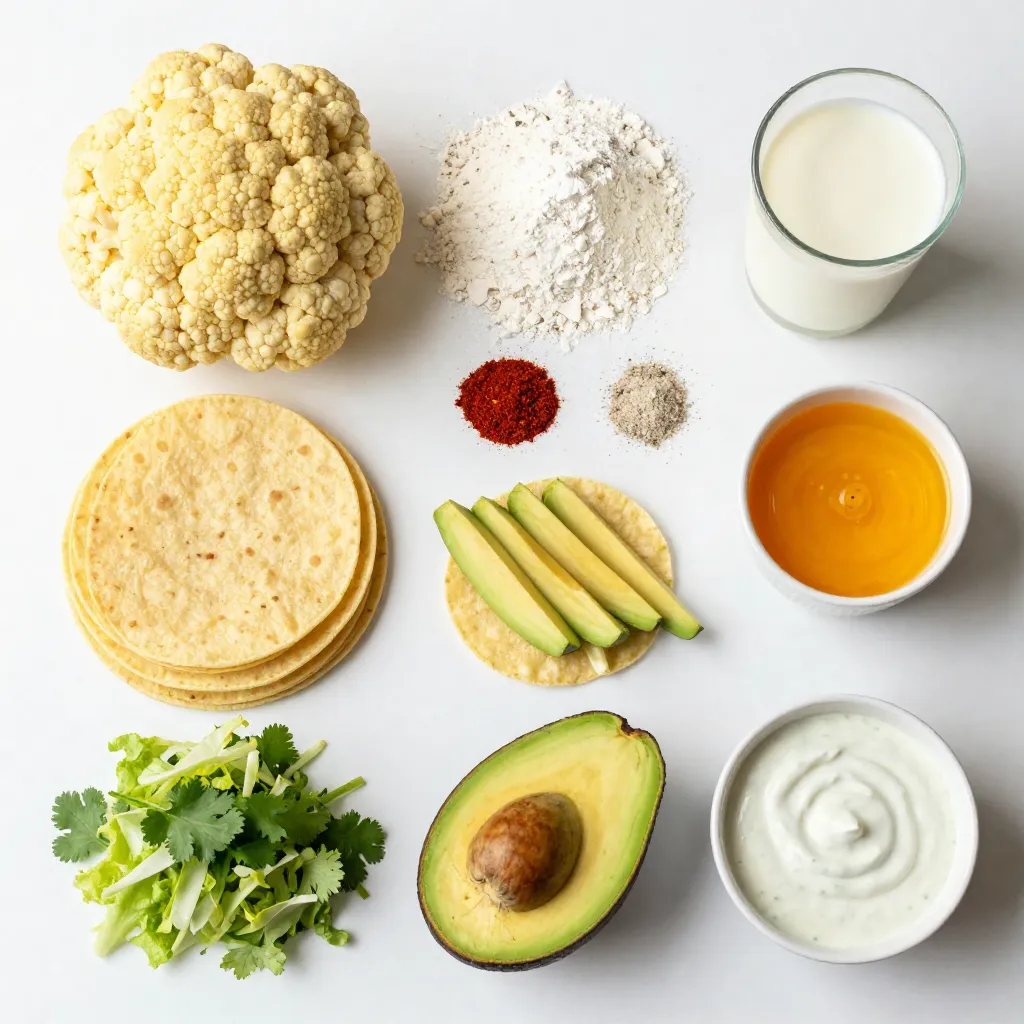 Hauptzutaten für Vegan Buffalo Cauliflower Tacos